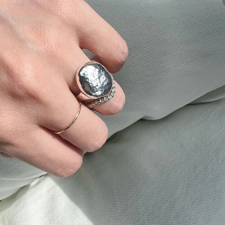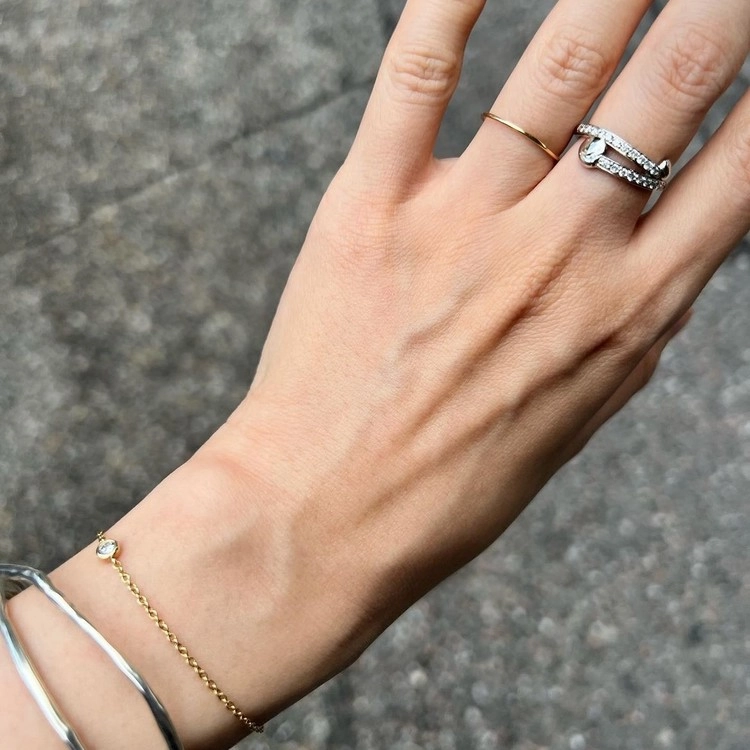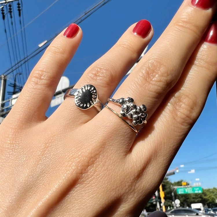 실링(Sil Ring)은 약 1mm 두께의 18K 금으로 작업된 선에서 여린 아름다움을 느끼실 수 있는 반지입니다. 선 형태로 되어 있는 주얼리 왁스를 가늘게 다듬어 끝과 끝을 이어붙여 작업 하였으며, 끝이 맞닿은 매듭 부분을 다듬지 않고 섬세한 굴곡을 주었습니다. 이런 작은 부분들의 섬세한 디자인적 요소는, 단순한 디자인이지만 유기적인 세련됨을 느끼게 합니다. 특히 다른 반지들과 함께 착용했을 때 반지들의 전체 스타일링을 돋보이게 뒷받침 해주는 역할을 하는, 마치 뛰어난 조연같은 반지이기도 합니다. 활용도가 높은 기본형 아이템으로, 반지 마니아 분들께 추천드립니다.