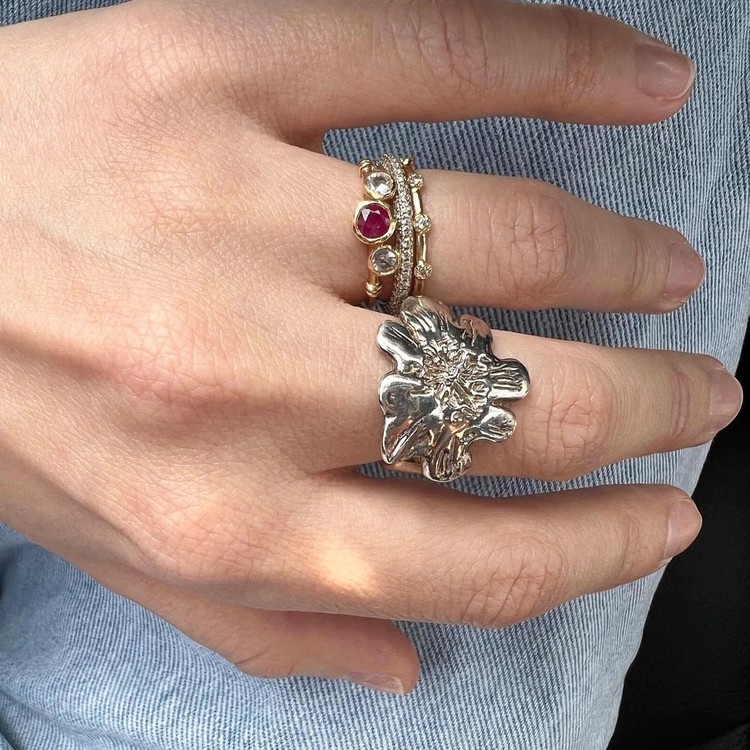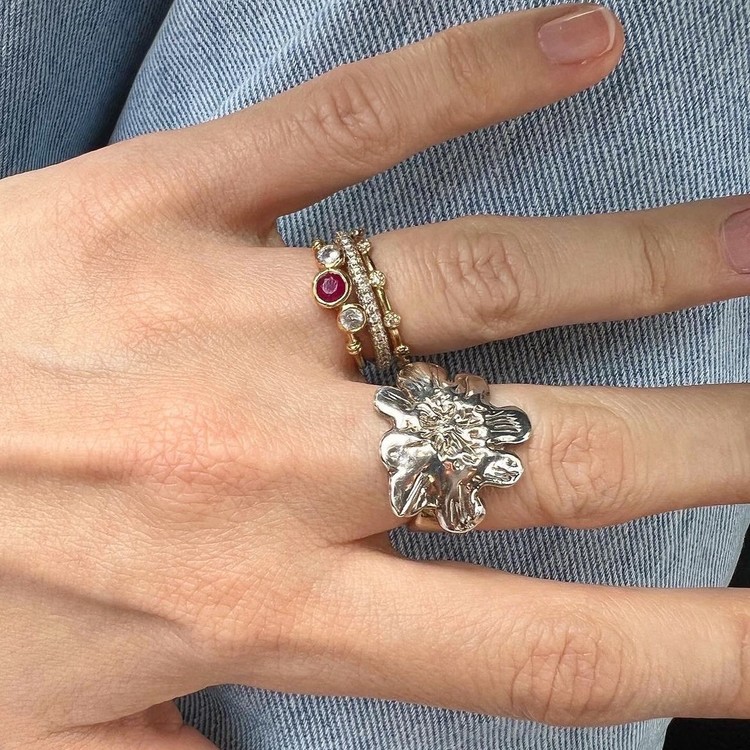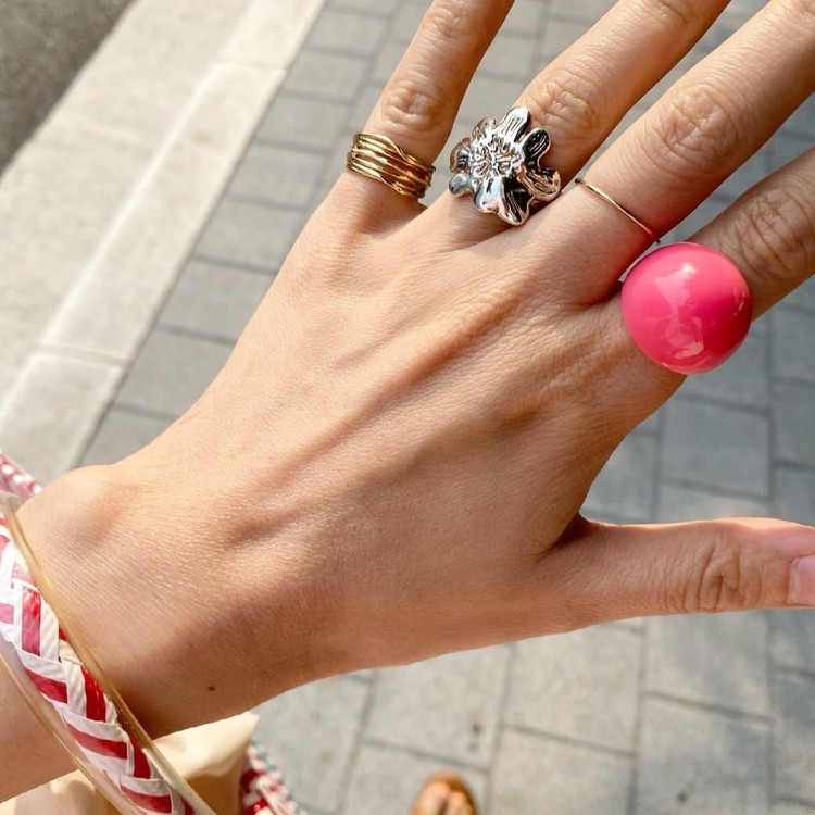 ์ง๋ฌ๋๋ฅผ ๋ปํ๋ ์์ ค๋ฆฌ์๋ง(Azalea Ring)์ ํ๊ฐ์ด์ SGJ ์ฃผ์ผ๋ฆฌ ๋์์ด๋์ธ ๊นํธ์ง ์๊ฐ๊ฐ ์์ค ํ๋ฉด์ ์ง์ ๊ทธ๋ ค ํํํ ์ง๋ฌ๋๊ฐ, ์์ ์ ์ธ ์๋ฆ๋ค์์ผ๋ก ๋น๋๋ ๋ฐ์ง์ ๋๋ค. ์์ ํํ๊ฐ์ ์กฐ๊ฐํ์ ์ฐฉ์ฉํ ๊ธฐ๋ถ์ ๋๋ผ์ค ์ ์๋ ํผ์ค๋ก, ๋ท๋ถ๋ถ์ ์คํ๋ง ํํ๋ก ์์ ๋์ด ์๊ฐ๋ฝ ์ฌ์ด์ฆ์ ํฌ๊ฒ ๊ตฌ์ ๋ฐ์ง ์๊ณ ํธ์ํ๊ฒ ์ฐฉ์ฉํ์ค ์ ์์ต๋๋ค. ๋ฏธ์ ์ ์ฌ๋ํ๊ณ ๊ฝ ๋ชจํฐ๋ธ๋ฅผ ์ข์ํ์๋ ๋ฐ์ง ๋ฌ๋ฒ๋ถ๋ค๊ป ์ถ์ฒ๋๋ฆฝ๋๋ค.