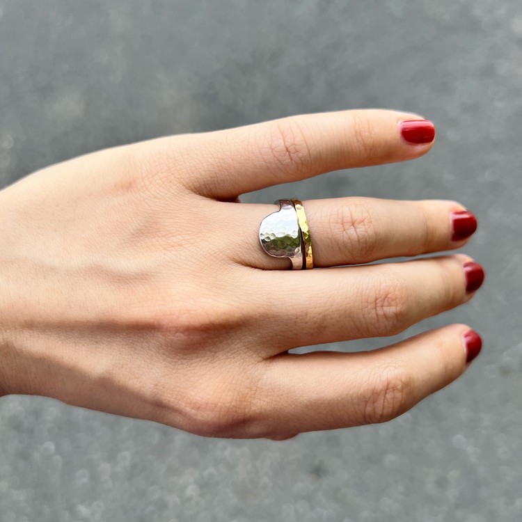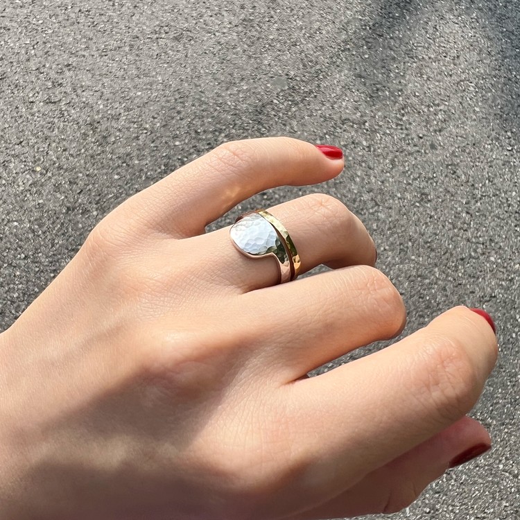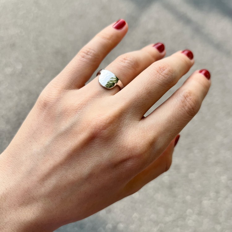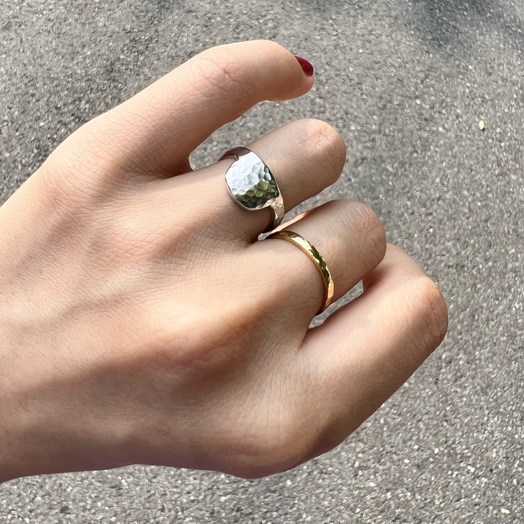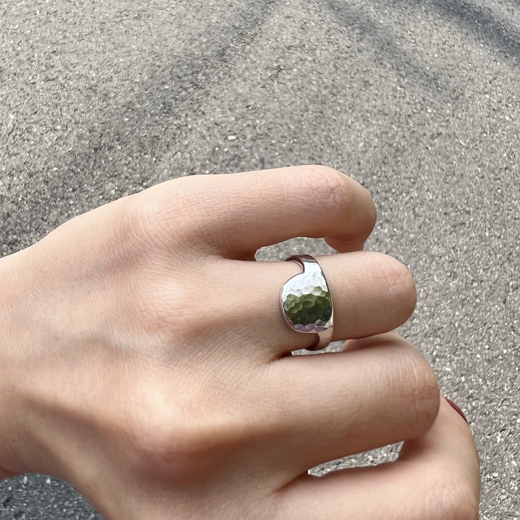 하프문 아이기스링(Half Moon Aegis Ring)은 SGJ가 오랜 시간 동안 전개하고 있는 아이기스 시리즈의 5번째 작업으로, 제우스의 방패를 뜻하는 아이기스를 모티브로 하여 작업되고 있습니다. 모든 천둥과 벼락도 막아내는 제우스의 방패처럼, 아이기스링을 착용하시는 분들로 하여금 어떠한 역경도 이겨내고 보호받기를 원하는 마음에서 시작되었습니다. 5번째 버젼인 하프문 아이기스링은 가장 아름다운 비율의 반달을 만들기 위해 여러번의 샘플 작업 과정을 거쳐 완성 되었으며, 손가락을 감싸는 밀착형으로 손을 자주 사용하는 일상에서 착용 해도 걸림이 없습니다. 심플한 형태이지만 각각의 반지 마다 표면에 매번 작업되는 헤어링 텍스쳐는 하프문 아이기스링을 더욱 고급스럽고 세련되게 합니다. 단독 착용으로도 아름다운 반지이지만, 얇은 다른 반지들과 레이어드로 착용해도 독특하게 연출하실 수 있습니다. 유니크한 실버 데일리 반지를 찾으시는 분들께 추천드립니다.