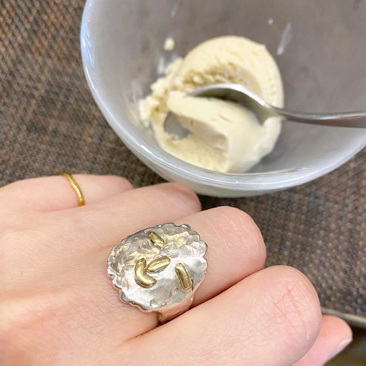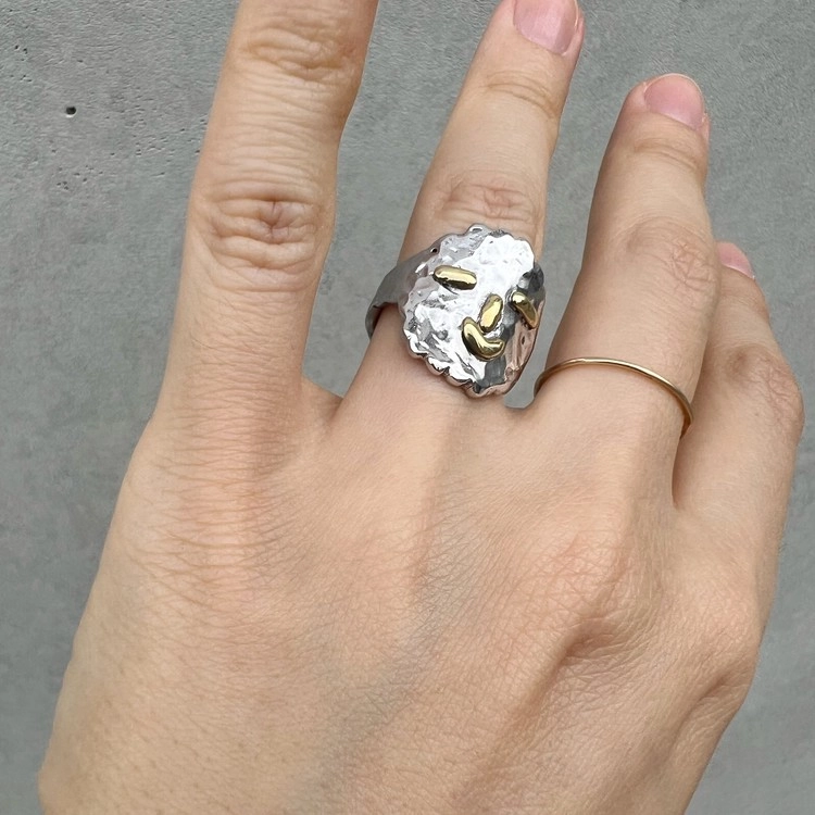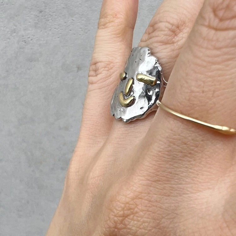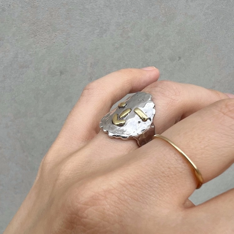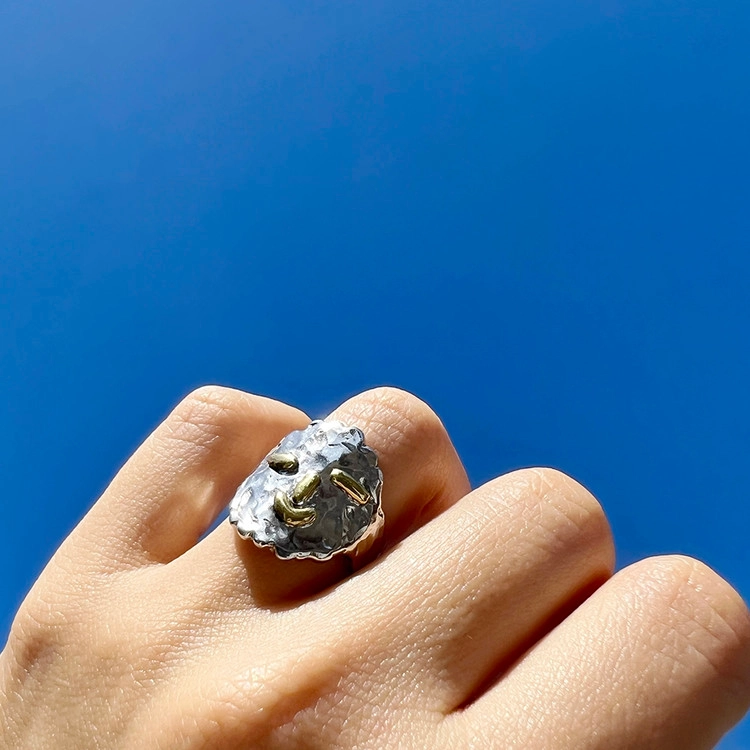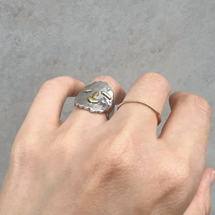 히히링(Hihi Ring)은 웃는 모습이 매력적인 반지로 SGJ의 아트를 사랑하는 마음을 담아 특별히 제작되었습니다. 실버 소재의 반지에 눈, 코, 입은 동 소재로 각각 따로 작업하여 부착 하였으며, 손가락에 직접 둘러가며 작업하여 착용감이 편안합니다. 2cm 크기의 얼굴이지만 적당한 두께감으로 무겁지 않습니다. 반지를 사랑하는 마니아 분들은 여러 반지와 함께 착용해도 세련되게 연출하실 수 있습니다. 오픈링으로 작업되지만, 손가락 사이즈에 따라 오픈링 크기가 다르게 제작 되므로 옵션에서 사이즈를 선택하여 주시기 바랍니다.