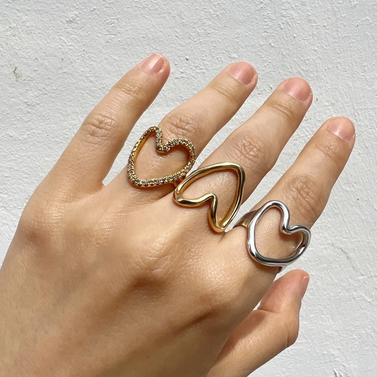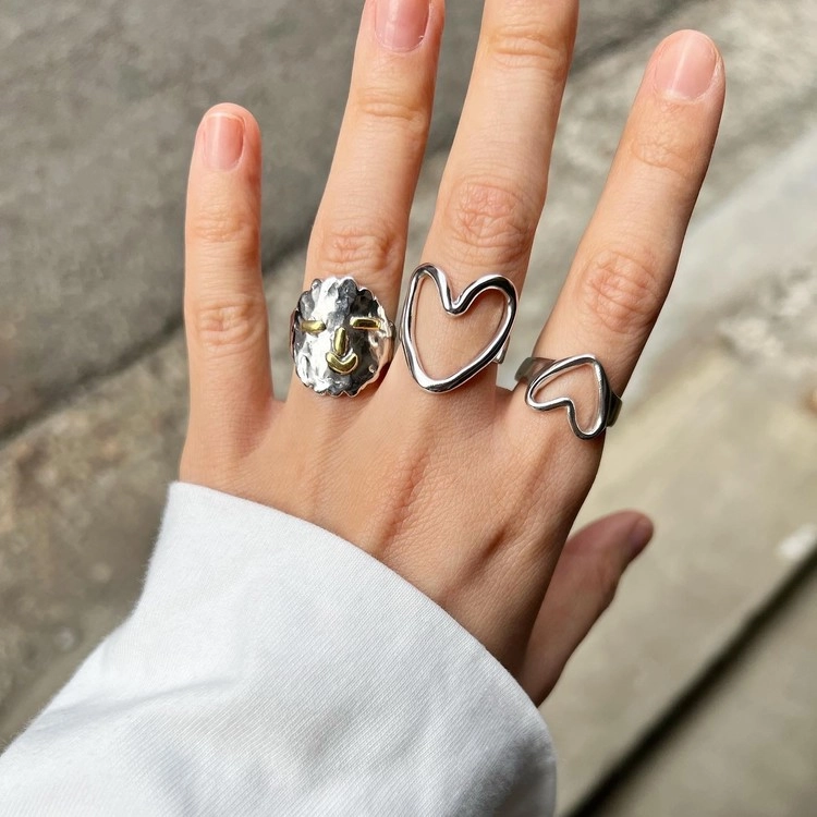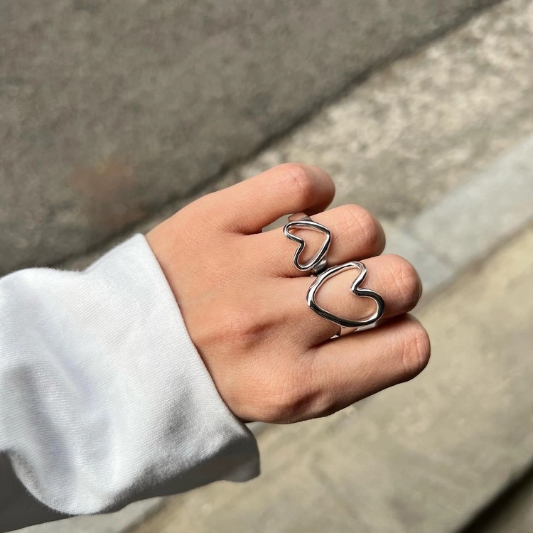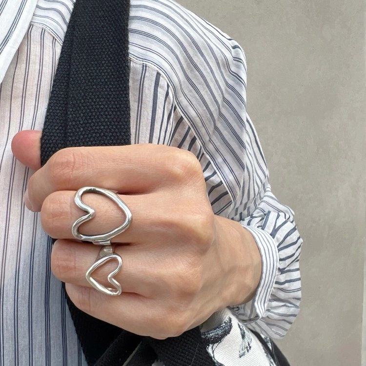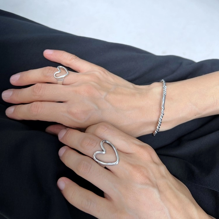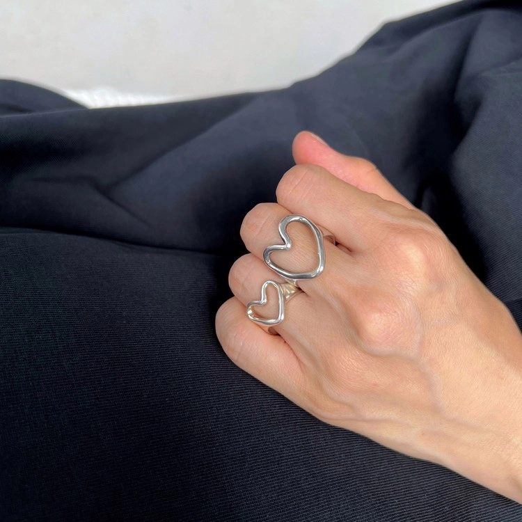 하트 모양의 모티브에 담긴 사랑스러움을 기본으로, 모던하고 세련된 멋도 함께 담고 있는 반지입니다. 하트 크기가 세로 약 2cm로 볼드한 느낌이 있지만, 선으로만 이루어져 있어 개방감이 느껴지며 부담 없이 착용하기 좋은 사이즈입니다. 착용할수록 매력적인 반지로, 실버 소재의 유니크한 데일리용 반지를 찾는 분들께 추천드립니다.