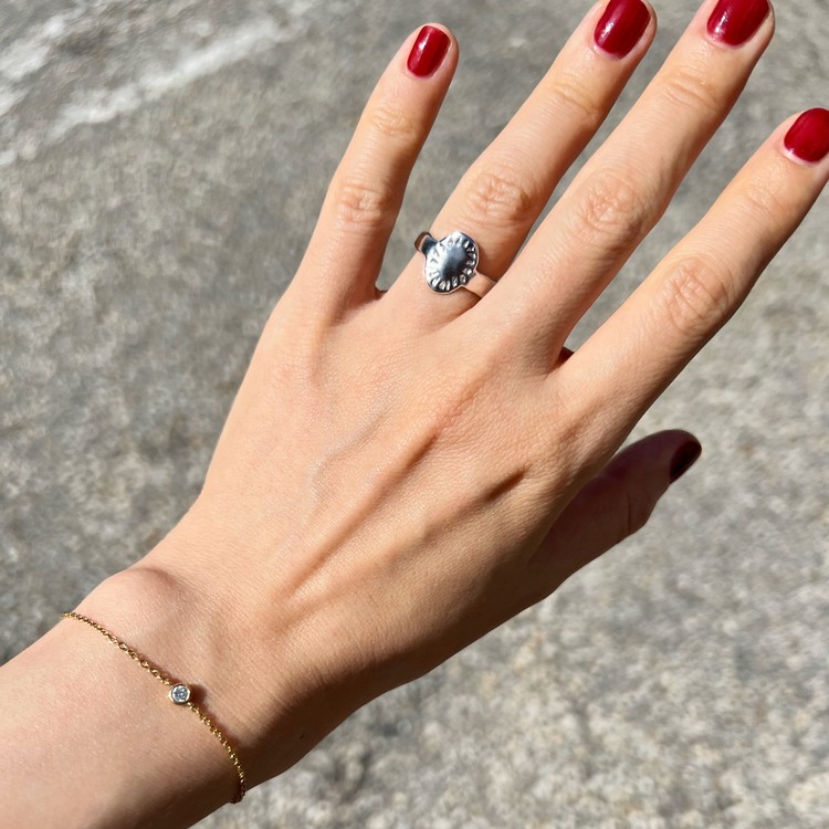 아이기스(Aegis)는 제우스의 방패를 의미합니다. 천둥과 벼락도 막아내는 제우스의 방패에서 영감을 얻어 시작된 아이기스 컬렉션은 SGJ의 시작부터 꾸준히 전개되고 있습니다. 스타 아이기스링은 아이기스 시리즈의 두번째 작업입니다. 방패의 전면 부분에 별빛의 반짝임이 새겨져 있으며, 어떠한 역경으로 부터도 보호 받으며, 아름답게 반짝이는 자신의 모습이 지켜지기를 바라는 마음을 담아 작업했습니다. 주얼리 왁스를 손가락에 직접 감아 작업하였기 때문에 착용감이 편안합니다. 무난한듯 유니크한 데일리용 실버 반지를 찾으시는 분들께 추천드립니다.