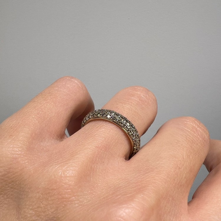 약 2mm두께의 기존 돔 이터너티 밴드와 함께 착용하면 반짝임이 배가 되어 화려한 멋이 돋보이며, 심플한 금 밴드와 함께 레이어드로 착용해도 단아하고 품격있는 디자인의 반지입니다.
