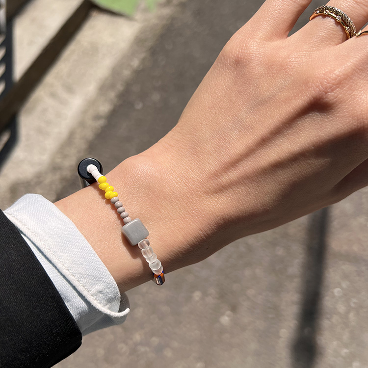 - 팔찌는 우레탄 소재의 투명 고무줄로 작업되며, 마무리 공정상 필요한 매듭 부분은 눈에 띌 수 있습니다.