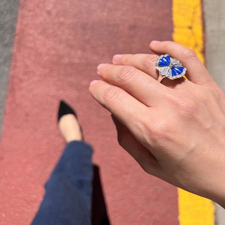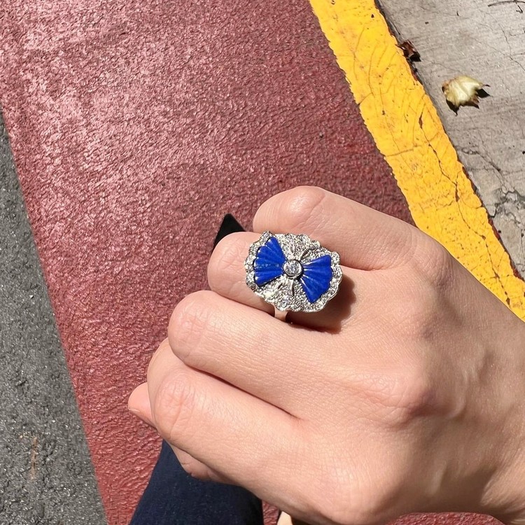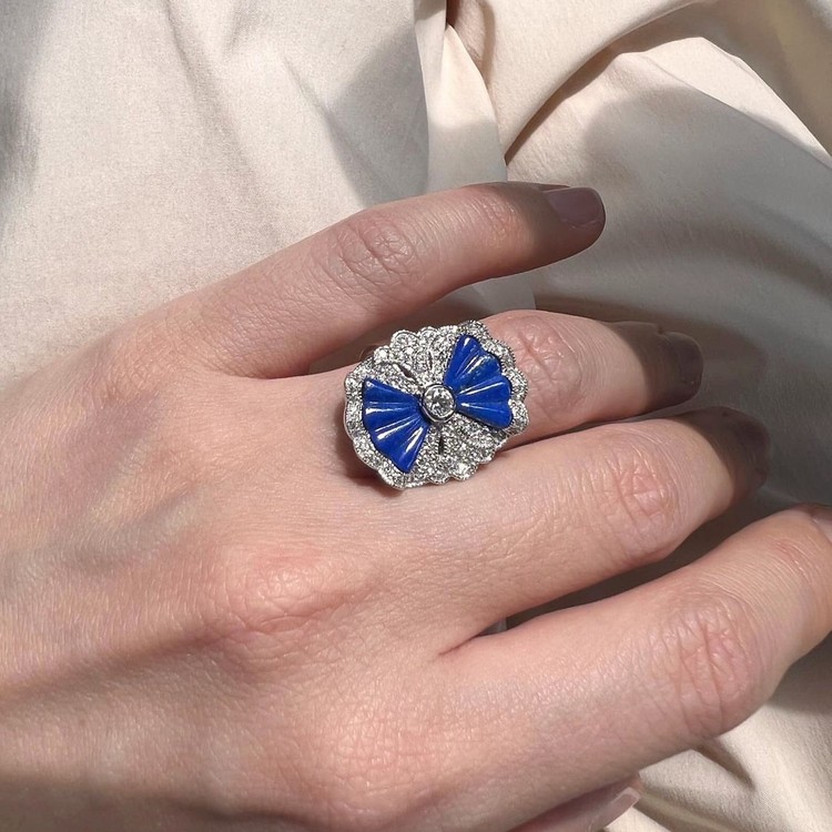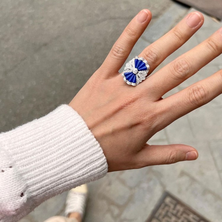 ๋ฏธ์ค ๋ผํผ์ค๋ง(Miss Lapis Ring)์ ์ฑ๊ณต, ๋ฒ์, ํ์ด๋ฑ์ ์์งํ๋ ๋ผํผ์ค ๋ผ์ค๋ฆฌ ์์์ ๋ถ์ฑ๊ผด ๋ชจ์์ผ๋ก ๊น์ ์ ํ ํ ์๋ฆ๋ค์ด ๋ฐ์ง์ ๋๋ค. ์ํฑ ์คํ์ผ์์ ์๊ฐ์ ๋ฐ์ SGJ๊ฐ ์ ๊ฐํ๊ณ ์๋ ๋ ธ์คํ ์ง์ด ์ปฌ๋ ์ ์ ๋ฐ์ง๋ก, ์๋ฅด๋ฐ์ฝ ์๋์ ํ๋ คํ ๋์นญ๋ฏธ์ ๋ด๊ธด ์ฐ์ํจ์ ๋ง๊ป ์ฆ๊ธฐ์ค ์ ์์ต๋๋ค.