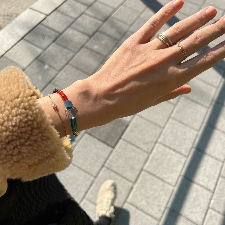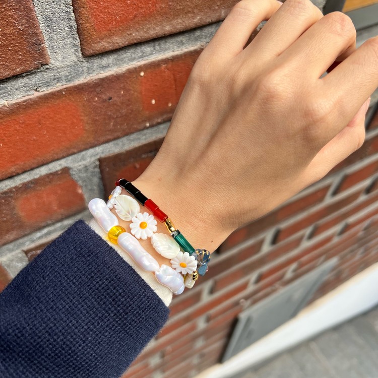 - 팔찌는 우레탄 소재의 투명 고무줄로 작업 되며, 마무리 공정상 필요한 매듭 부분은 눈에 띌 수 있습니다.