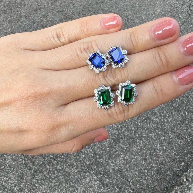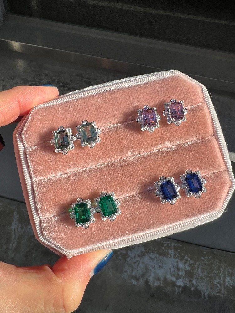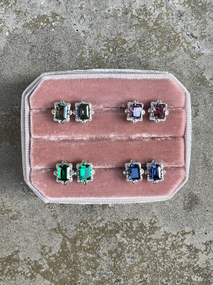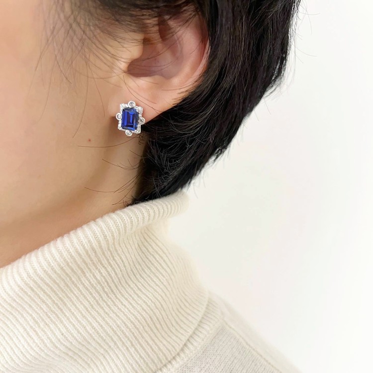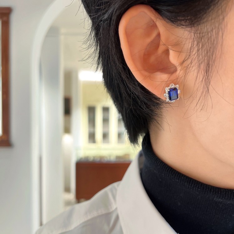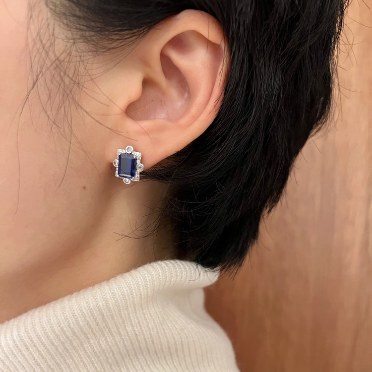 틸다 귀걸이(Tilda Earrings)는 중심석 주변을 작은 스톤들로 에워싸는 헤일로(Halo) 스타일의 귀걸이로, 클래식한 세련됨이 예쁜 피스입니다. 사파이어 컬러를 닮은 큐빅 지르코니아는 엣지있는 느낌을 더합니다. 약 11mm(가로) x 12mm(세로) 크기는 스터드형 귀걸이로 작지도 크지도 않기 때문에 부담없이 돋보이는 스타일링을 하기 좋습니다. 사방을 둘러싼 원형 큐빅 지르코니아 중심에는 로즈컷 큐빅 지르코니아를 셋팅하여 섬세한 고급스러움을 더했습니다. 은 소재에 백금 도금하여 변색을 더디게 하였으며, SGJ 하이엔드 금 소재 주얼리를 작업하는 과정처럼 섬세한 공정 과정을 거쳐 완성 하였습니다.