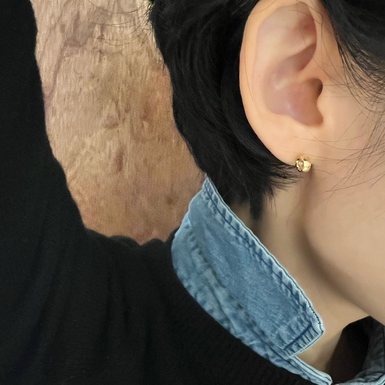 바이스 버사 귀걸이(Vice Versa Earrings)는 주얼리 왁스를 사용하여 비슷한 크기의 원형을 만든 후, 귀걸이 침을 부착하는 위치를 다르게 하여 완성한 피스입니다. 다른듯 닮은 좌, 우 한 쌍이 어우러져 유니크한 멋을 연출합니다. 지름 약 5mm로 데일리용 귀걸이로 적합한 크기이며, 단순한듯 위트있는 디자인으로 정장과 캐주얼 어떤 룩에도 자연스럽게 매치됩니다. SGJ 특유의 손맛과 은은한 세련미를 선호하시는 분들께 추천드립니다.