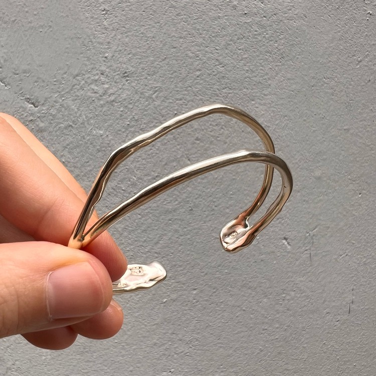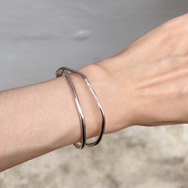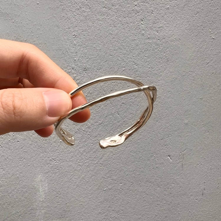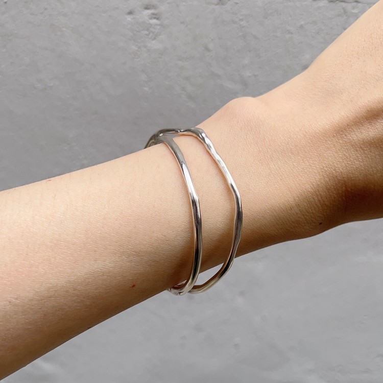 ๋๋ธ ์์ด์ด ๋ฑ ๊ธ(Double Wire Bangle)์ SGJ์ ์์ฐ์ค๋ฌ์ด ์ํฌํจ์ ์ ์ด๋ฆฐ ํผ์ค์ ๋๋ค. ์์ด์ด๋ฅผ ๊ฒน์ณ ๊ฐ์ ๋๋์ผ๋ก ๋ณด์ด๋๋ก ์์ ํ์์ต๋๋ค. ์์ด์ด ์ ์ด ๋ง๋๋ ๊ณต๊ฐ์ ์ฌ๋ฐฑ์ ์๋ฆ๋ค์์ ์ฐ์ถํ๋ฉฐ '๊พธ์๊พธ' ์คํ์ผ, Effortless Chicํจ์ ์ฐ์ถํฉ๋๋ค. ๋ฑ ๊ธ์ ๊ณ์ ์ฌ๋ฆ์ ๋ง์ดํ์ฌ, SGJ ๋ฌ๋ฒ๋ถ๋ค์ด ํธ์ํ๊ณ ๋ฉ์ค๋ฝ๊ฒ ์ฐฉ์ฉํ์ค ์ ์๋ ๋ฑ ๊ธ๋ก ์ถ์ฒ๋๋ฆฝ๋๋ค. ๋ฑ ๊ธ ๋ด๊ฒฝ์ ์ฝ 16cm์ผ๋ก ์ฌ์ด์ฆ M์ ๊ธฐ๋ณธํ์ผ๋ก ์์ ๋ฉ๋๋ค. M ์ฌ์ด์ฆ๋ ์๋ชฉ ๋๋ 13.5~14.5cm์ธ ๊ฒฝ์ฐ ํธํ๊ฒ ์ฐฉ์ฉํ์ค ์ ์์ผ๋ฉฐ, ๊ทธ ์ธ์ ์ฌ์ด์ฆ๋ ๋ง์ถค ์ ์์ผ๋ก ์์ ๋ฉ๋๋ค.