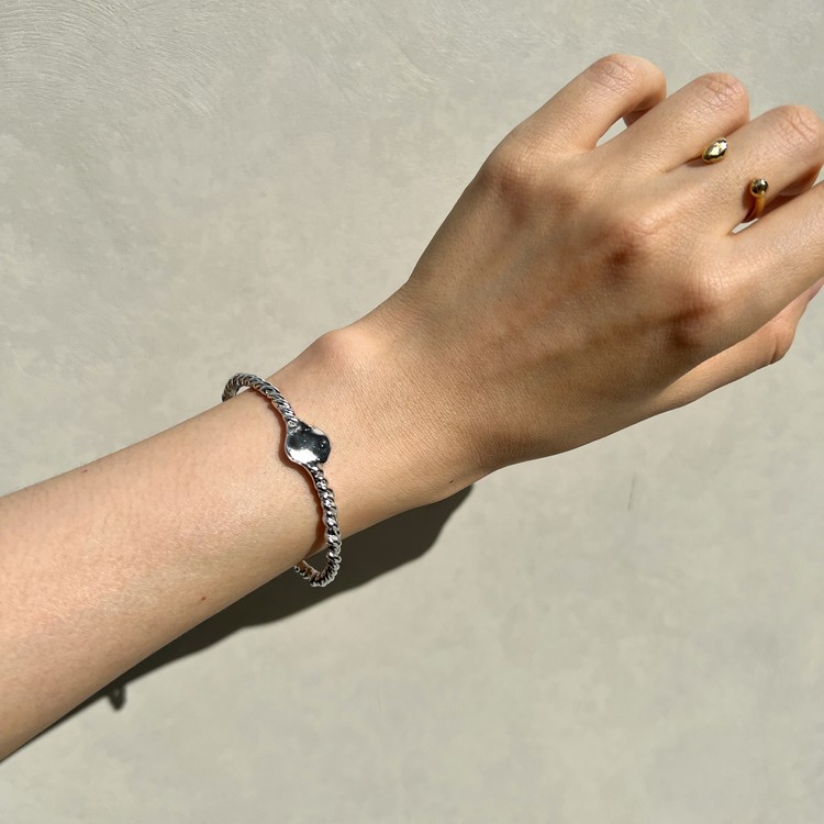 시그넷 케이블 뱅글(Signet Cable Bangle)은 선 형태의 주얼리 왁스를 꼬아 작업하였으며, 중앙에 시그닛 반치처럼 원형을 넣어 멋스러움을 더했습니다. 부드럽고 편안한 착용감을 선호하는 SGJ답게 모든 뱅글 모서리 표면을 완만한 곡선으로 마무리 하였으며, 수작업으로 만들었기 때문에 꼬임과 원형의 형태에서 비정형적인 세련됨이 묻어납니다. 서정적인 손맛이 묻어 있지만 모던한 심플함이 예쁜 뱅글로 담백한 주얼리 스타일링을 좋아하시는 분들께 추천드립니다.