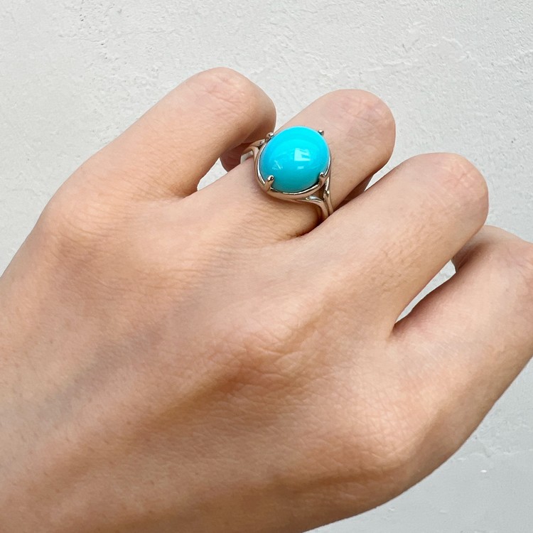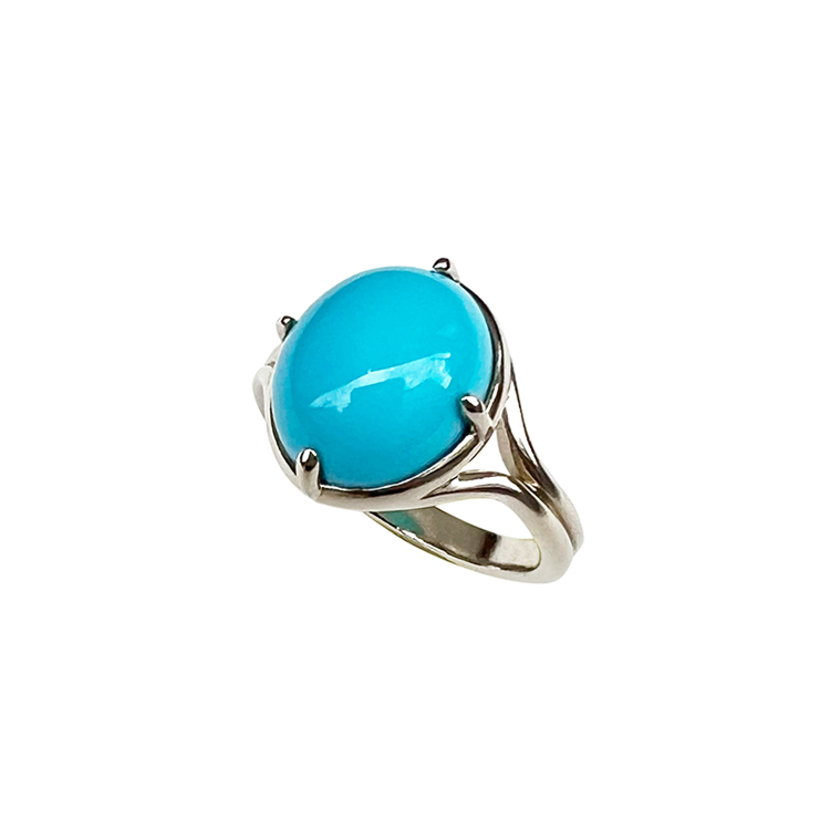 엔틱 스타일 터키석 반지(Antique Style Turquoise Ring)는 쾌청한 하늘을 연상케 하는 아름다운 컬러의 터키석이 네개의 프롱에 심플하게 셋팅되어 있습니다. 터키석은 성공과 승리를 약속하는 의미를 담고 있는 보석이며, 더운 계절과 유독 잘 어울리지만 12월 탄생석 이기도 합니다.