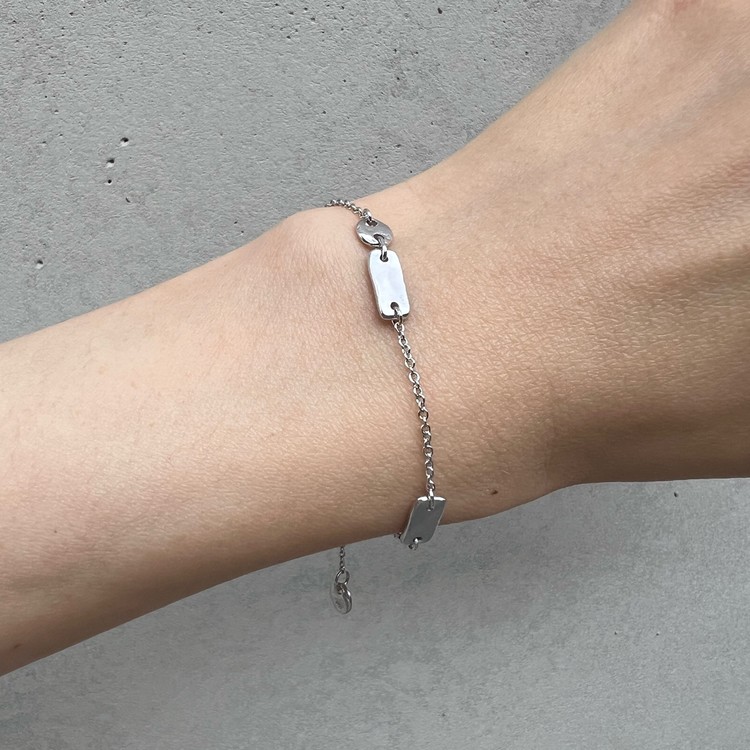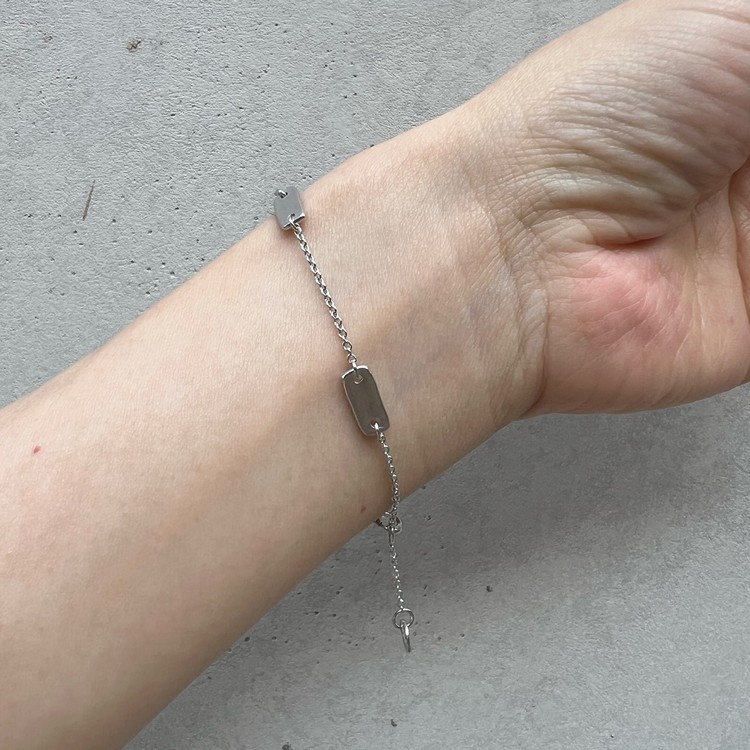 브리지 팔찌(Breezy Bracelet)은 윤동주의 시집, '하늘과 바람과 별과 시' 중에서도 '바람'의 시어에서 영감받아 디자인 되었습니다. 어딘가에서 불어오는 바람을 추상적으로 표현한 팔찌로, 불규칙적으로 연결된 동그라미, 직사각형의 모티브가 은은하게 아름답습니다. 시계 혹은 다른 팔찌와 레이어드로 착용해도 좋은 아이템으로 경량의 무게감으로 매일 착용해도 편안합니다. 중간 고리가 있어 15.5cm 혹은 17.5cm 두가지 다른 기장으로 착용하실 수 있습니다.