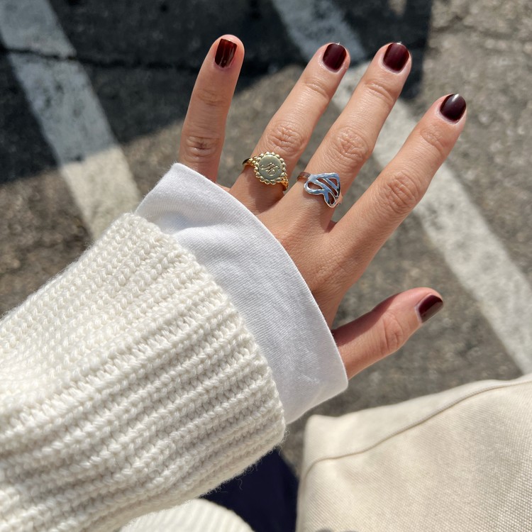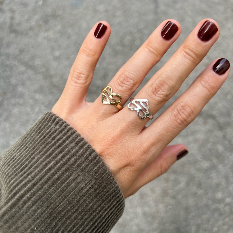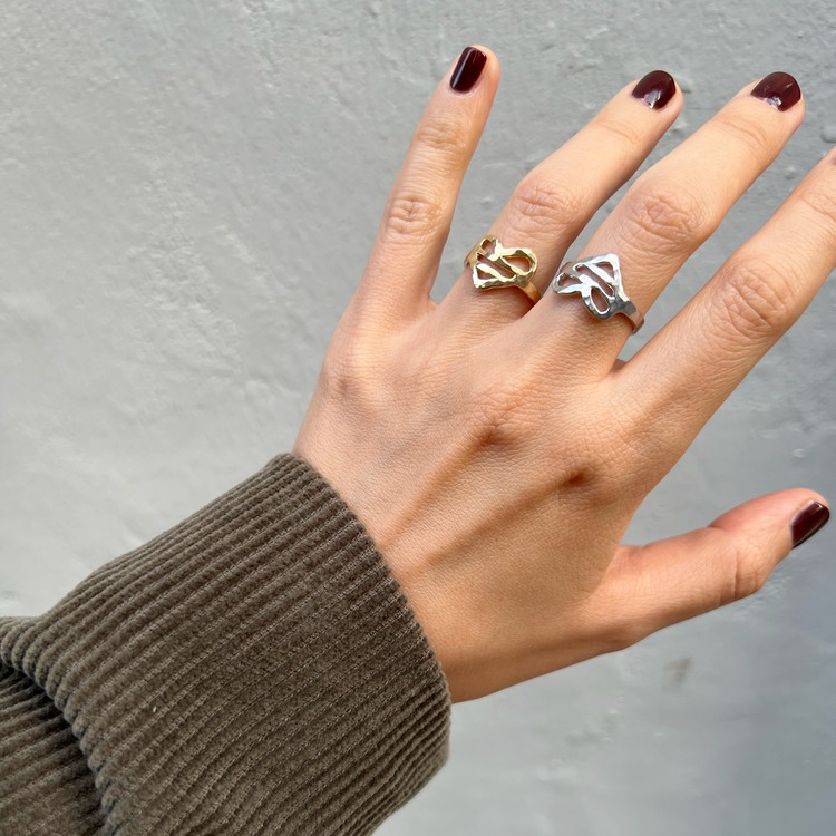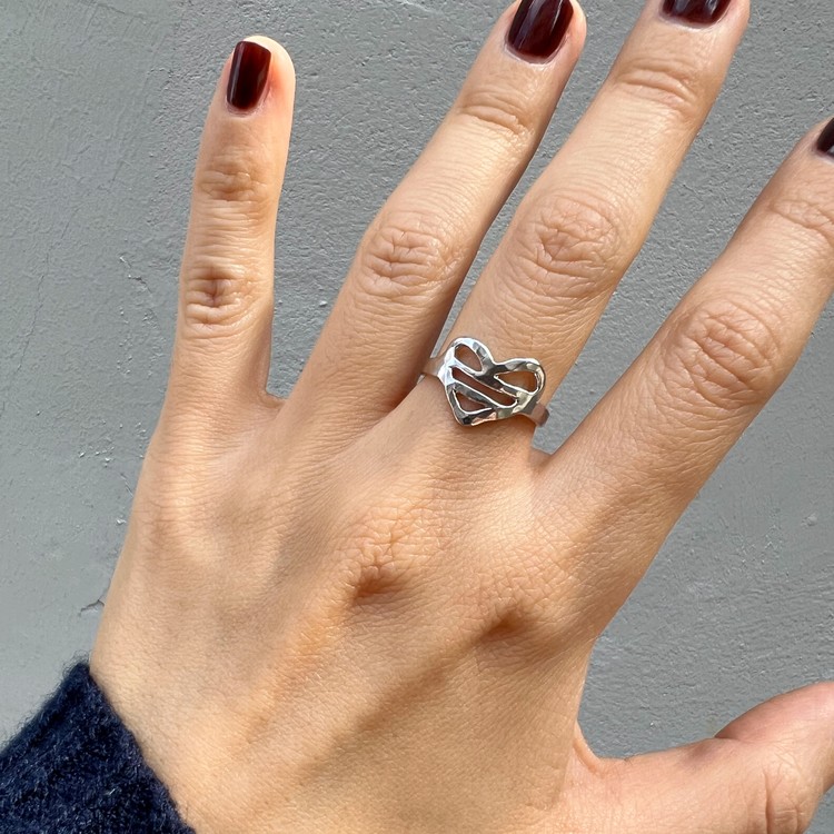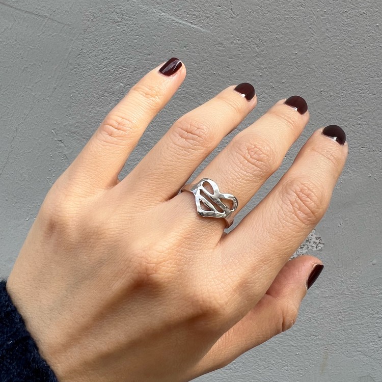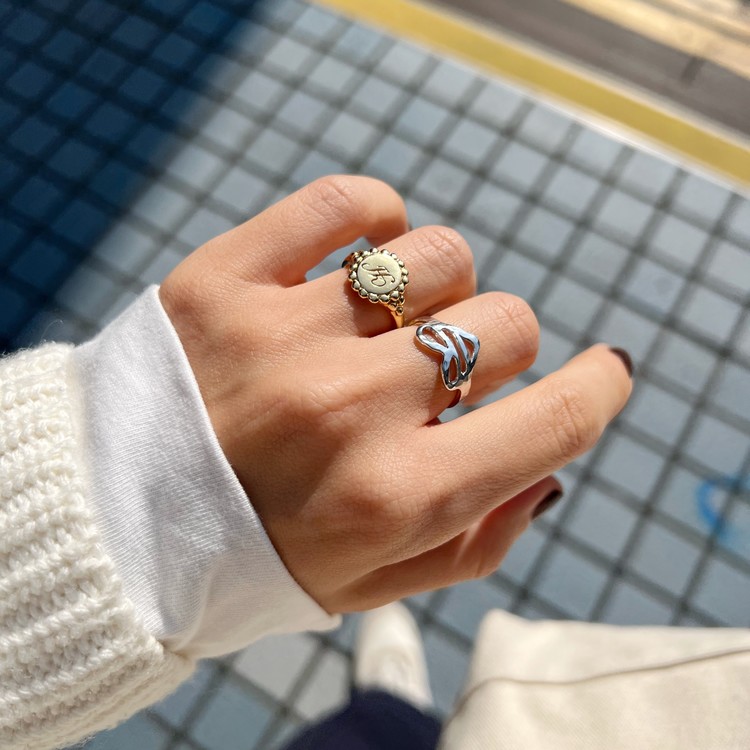 스트라입드 하트 링(Striped Heart Ring) 실버 버젼은 주얼리 왁스를 사용하여 줄무늬 하트를 빚어 만들었습니다. SGJ의 스테디셀러로 많은 사랑을 받아온 '드로잉' 시리즈 하트 반지보다 두께감이 있는 형태로, 은은히 세련된 존재감을 연출합니다. 손가락을 감싸는 형태로 편안한 착용감을 자랑하며, 데일리 반지로 즐기실 수 있는 피스입니다. 폴리싱 전 단계에서 헤머링 텍스쳐를 주어, 망치로 두들겨 멋을 낸 표면을 자연스럽게 연출한 부분도 스트라입드 하트링의 특징입니다.