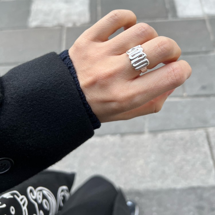 위글링(Wiggle Ring)은 굵은 주얼리 선왁스를 꼬불하게 휘어 붙여 작업한 반지로, 전면의 볼드한 느낌이 세련된 피스입니다. 전면의 볼드함을 살리면서 편안한 착용감을 위해 반지 밴드 부분은 따로 작업하여 연결하였기 때문에 착용시 무겁거나 불편하지 않고 편안합니다. 모던한 느낌의 실버 주얼리를 좋아하시는 분들께 추천드리며, 데일리용이나 포인트 주얼리 모두 활용도가 뛰어난 반지입니다.