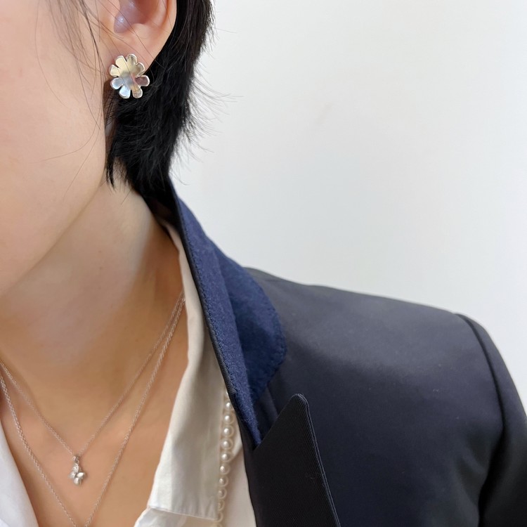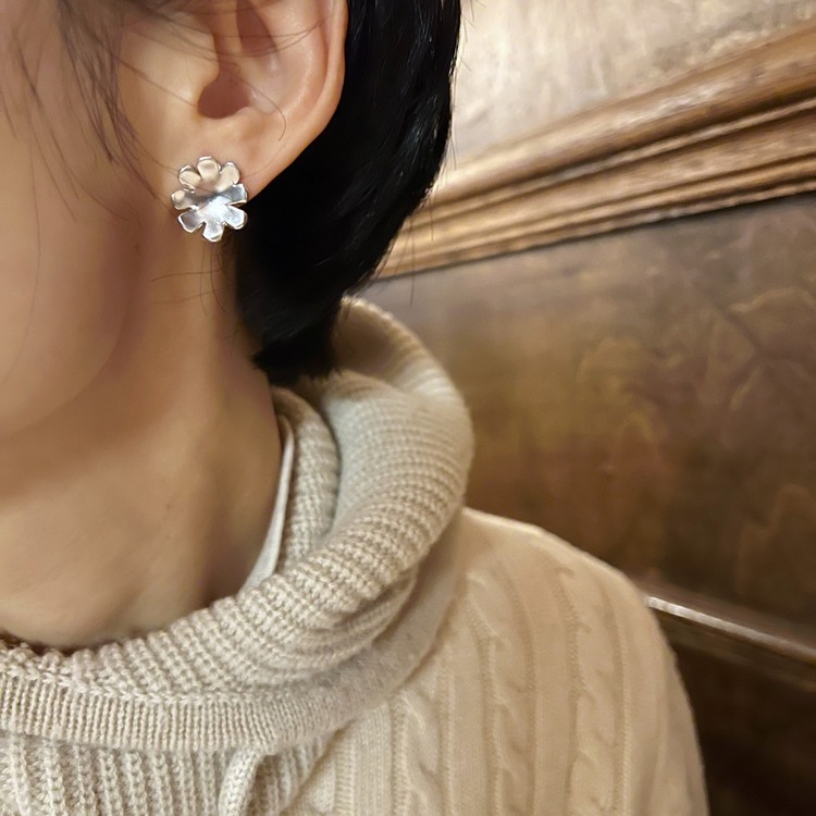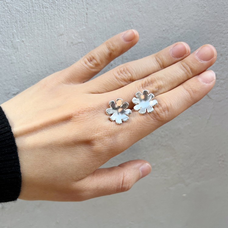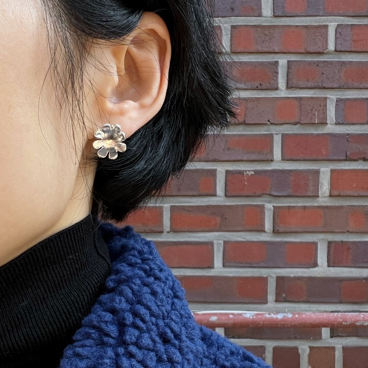 페이퍼 플라워즈 귀걸이(Paper Flowers Earrings)는 마치 종이로 꽃을 오려 만든듯한 형태로, 심플한 조형미가 돋보이는 피스입니다. 평면으로 작업한 후, 음각의 볼륨을 주었기 때문에 단아한 우아함을 더합니다. 꽃잎을 표현한 모서리 선은 부드럽게 갈아내어 걸림 없이 착용감이 편안합니다. 실버 소재, 금속 공예의 멋을 선호하시는 분들은 정장이나 캐주얼 룩 어느 스타일에나 자주 애용하실 수 있는 귀걸이입니다.