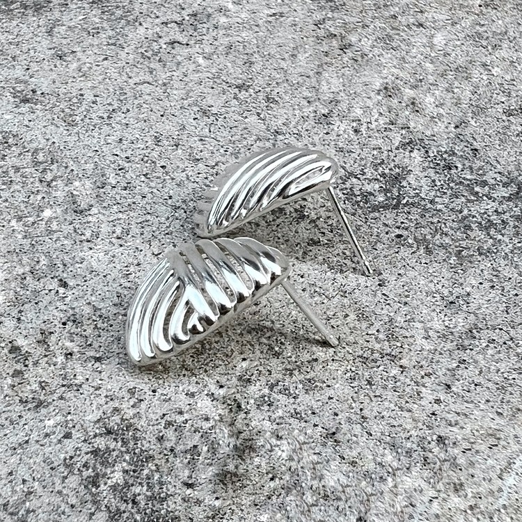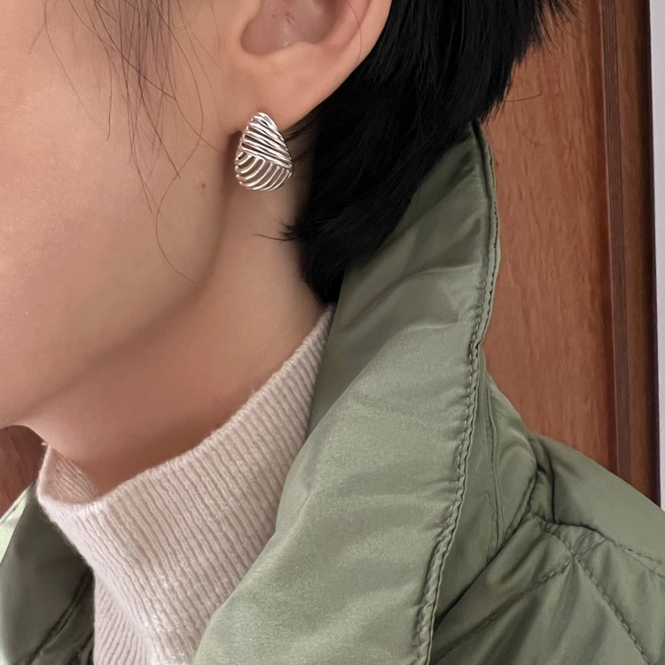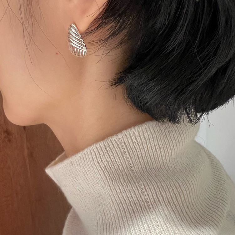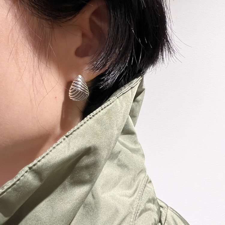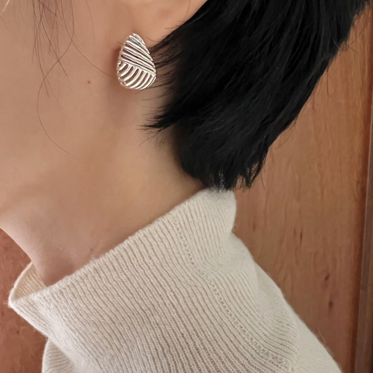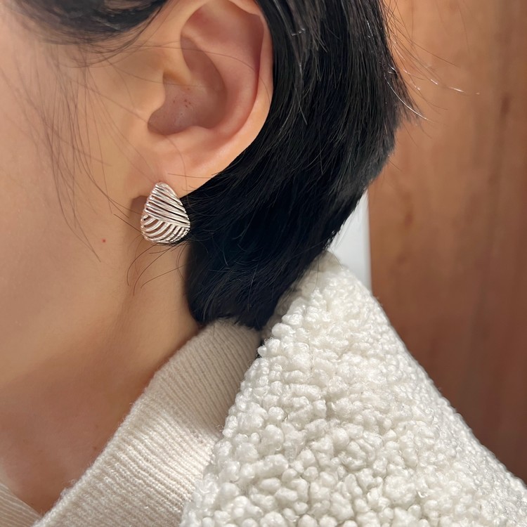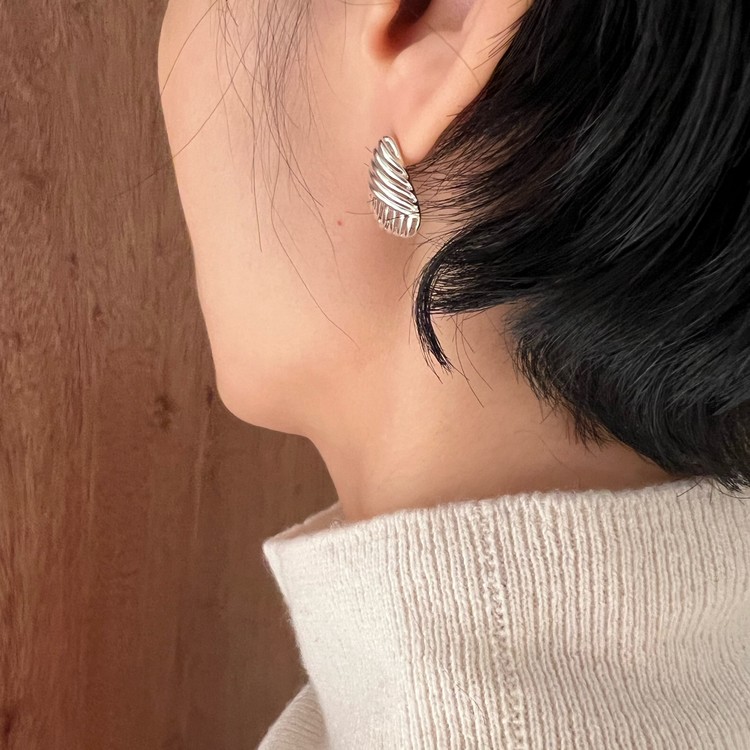 조개 껍질의 결에서 모티브를 얻어 작업한 쉘 귀걸이(Shell Earrings)는 부담 없이 멋스러운 포인트가 필요할 때 즐기실 수 있습니다. 가벼운 착용감을 위해 여러 번의 샘플 과정을 거쳐 만들어졌기 때문에 편안하게 착용하실 수 있습니다. 가로 15mm, 세로 20mm의 크기는 자주 착용해도 과하지 않은 무난한 사이즈감입니다.