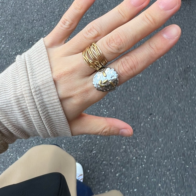 ํนํ ๋ง์ง๋ง ์ด๋ฏธ์ง์ฒ๋ผ ์์ด์ด ํญ์ด ๋๋ธ ์์ด์ด๋ ๋ฐ์ง๋ณด๋ค ์๊ฒ ๊ฐ๊ธด '์์ด์ด๋ ๋ง(Wired Ring)๊ณผ ํจ๊ป ์ ํธ์ฒ๋ผ ๊ฒน์ณ ์ฐฉ์ฉํ์๋ฉด, ๋ณด๋ค ์ํฉํธ ์๊ฒ ์ฐ์ถํ์ค ์ ์์ต๋๋ค. ๋๋ธ ์์ด์ด๋ง์ ์ ์์ ์ ๊ฐ๊ฐ์ ๋ฐ์ง๋ง๋ค ์์์ ์ผ๋ก ์งํ๋์ด, ์ฃผ๋ฌธ์ ์ด๋ฏธ์ง์์ ๋ณด์ด๋ ๋ฐ์ง์ ์ ๊ณผ ์ฝ๊ฐ์ ์ฐจ์ด๊ฐ ์์ ์ ์์ต๋๋ค.