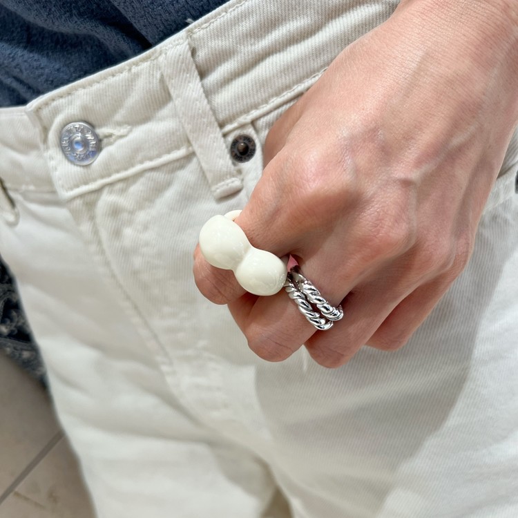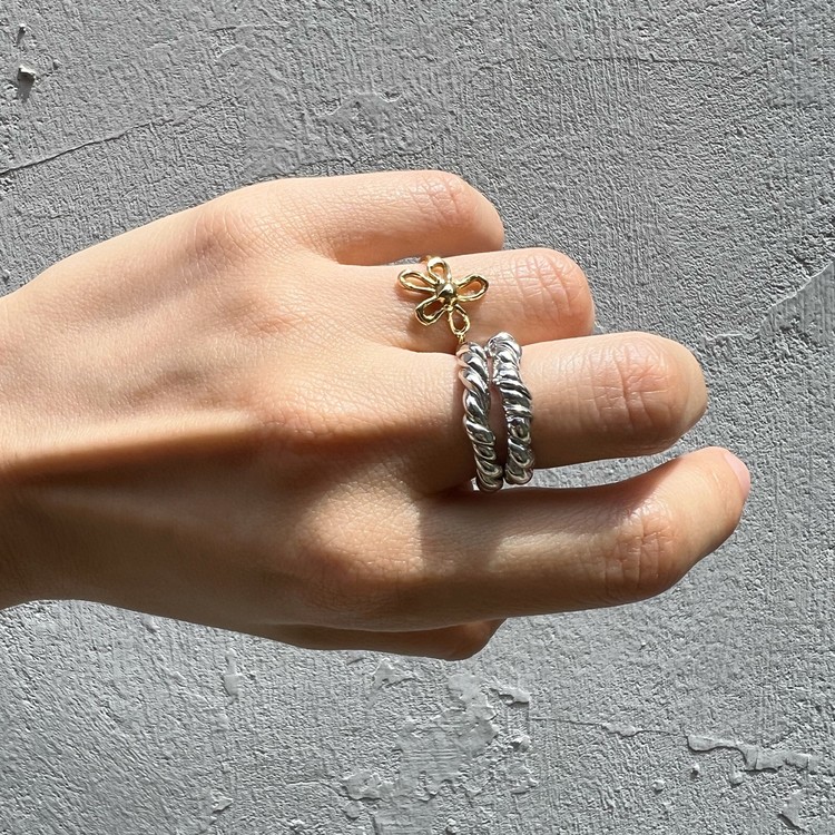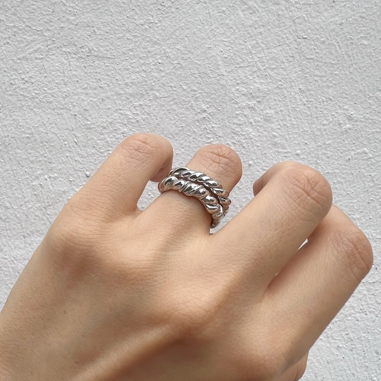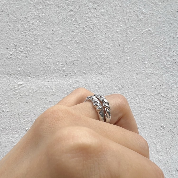 트위스트 앤 코일 반지(Twist & Coil Rings)는 닮은듯 다른 꼬임 반지를 쌍가락지 셋트로 착용하실 수 있게 만든 반지입니다. 주얼리용 선 왁스를 사용하여 수작업으로 꼬아 만들었습니다. 'Twist Ring'은 균일한 두께의 선 두개를 꼬았으며, 'Coil Ring'은 얇은 선을 추가로 덧대어 꼬임의 리듬감을 불규칙하게 표현하였습니다. 언뜻 보면 닮은듯 다른 두개의 반지가 만들어내는 조화는, 쌍가락지의 단아함도 담고 있으면서 유니크함도 함께 연출합니다. 낱개로 구매하실 경우, 옵션에서 Coil Ring 또는 Twist Ring을 선택하여 주시기 바랍니다.