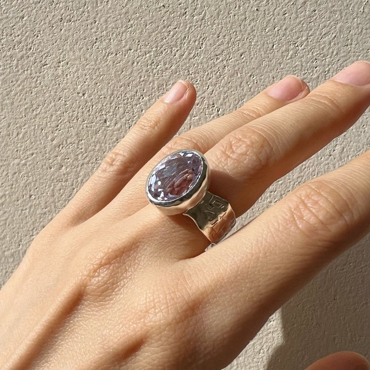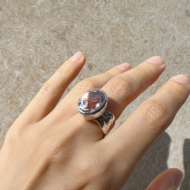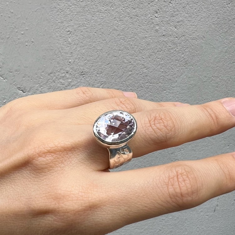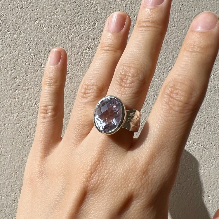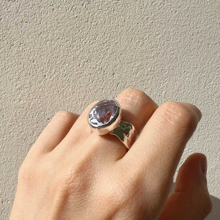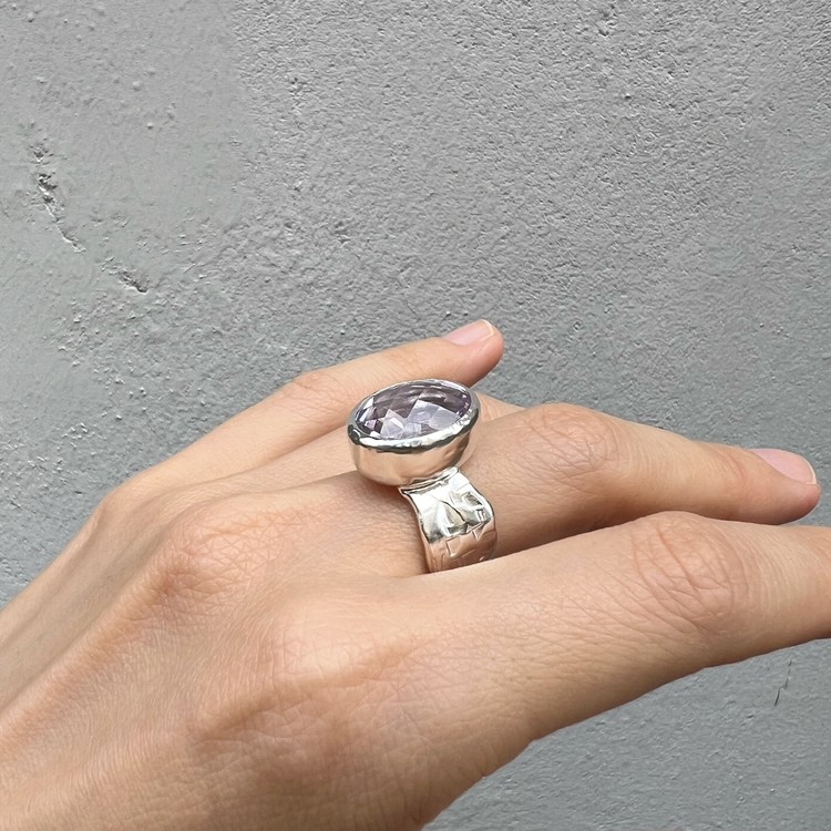๋ฐ์ด์ฌ๋ ๋ง(Violet Ring)์ ์์ฃผ ์ฐํ ๋ณด๋ผ๋น์ด ๊ฐ๋๋ ์์ ์ด ์ ํ ๋์ด ์๋ ์๋ฆ๋ค์ด ๋ฐ์ง์ ๋๋ค. ์ง์ ๋ณด๋ผ์์ ์์์ ๊ณผ ๋ค๋ฅด๊ฒ ๋ชจ๋ํ๋ฉฐ ์ฒญ์ํ ๋๋์ ๋ด๊ณ ์์ต๋๋ค. ์์ ์ ์๋ฉด์ด ๋ก์ฆ์ปท ํํ์ ๊ฒฉ์๋ก ๊น์, ๋ณผ๋ํ์ง๋ง ์ฐ์ํ ๋๋์ ๋ํ์ต๋๋ค. ์์์ ์ ๊ฐ์ธ๋ ๋์ง์ ์ ํ๋๋ฅผ ์ํ์ฌ ์ปดํจํฐ ์์ ์ ํ์๊ณ , ๋ฐ์ง์ ๋ฐด๋ ๋ถ๋ถ์ ์๋ง ํ ์ค์ณ๋ฅผ ์ด๋ฆฌ๊ธฐ ์ํด ์์์ ์ผ๋ก ๋ง๋ ํ, ๋ ๋ถ๋ถ์ ๊ฒฐํฉํ์ฌ ์์ฑํ์์ต๋๋ค. ์ฝ 8-10mm ์ ๋์ ๋๋น๋ก ๋น์ ํ์ ํํ์ ๋ฐด๋๋ SGJ ํน์ ์ ์๋ง ๊ฐ์ฑ์ ์ฐ์ถํ๋ฉฐ, ํ๋ฉด์ ์กฐ๊ฐ๋๋ก ๋ฌธ์์ ์ฐ์ด๋ด๋ ์์ ํ์ฌ ๋ ํนํ ์ง๊ฐ์ ๋๋ผ์ค ์ ์์ต๋๋ค. ๋ณ์์ ๋๋๊ฒ ํ๊ธฐ ์ํ์ฌ ๋ฐฑ๊ธ ๋๊ธ์ผ๋ก ๋ง๋ฌด๋ฆฌ ํ์์ต๋๋ค. ์์ค๋ํ ์ทจํฅ๊ณผ ๋ณผ๋ํ ์ค๋ฒ ์ฃผ์ผ๋ฆฌ๋ฅผ ์ข์ํ์ ๋ค๋ฉด ์ฆ๊ธฐ์ค ์ ์๋ ๋ฉ์์ด ๋ฐ์ง์ ๋๋ค.