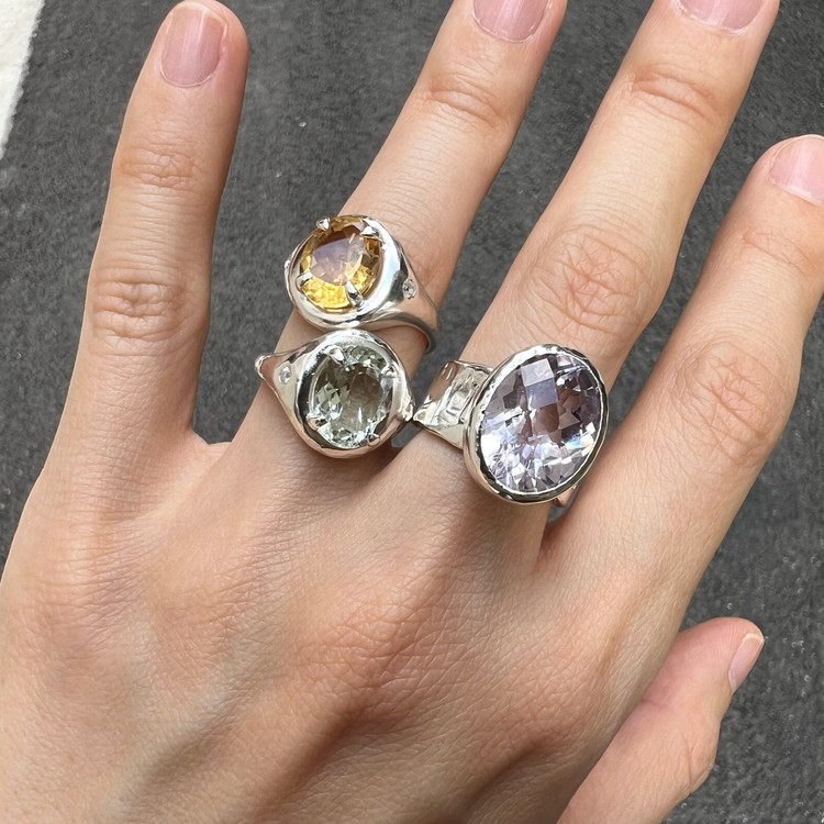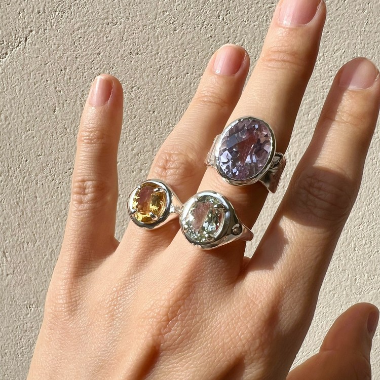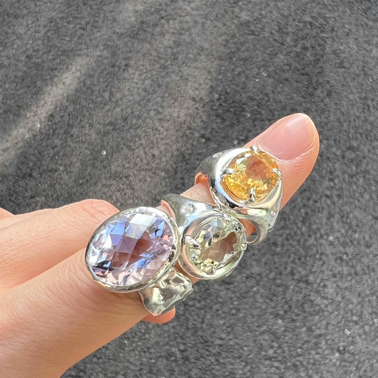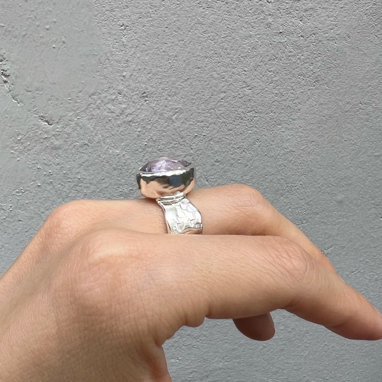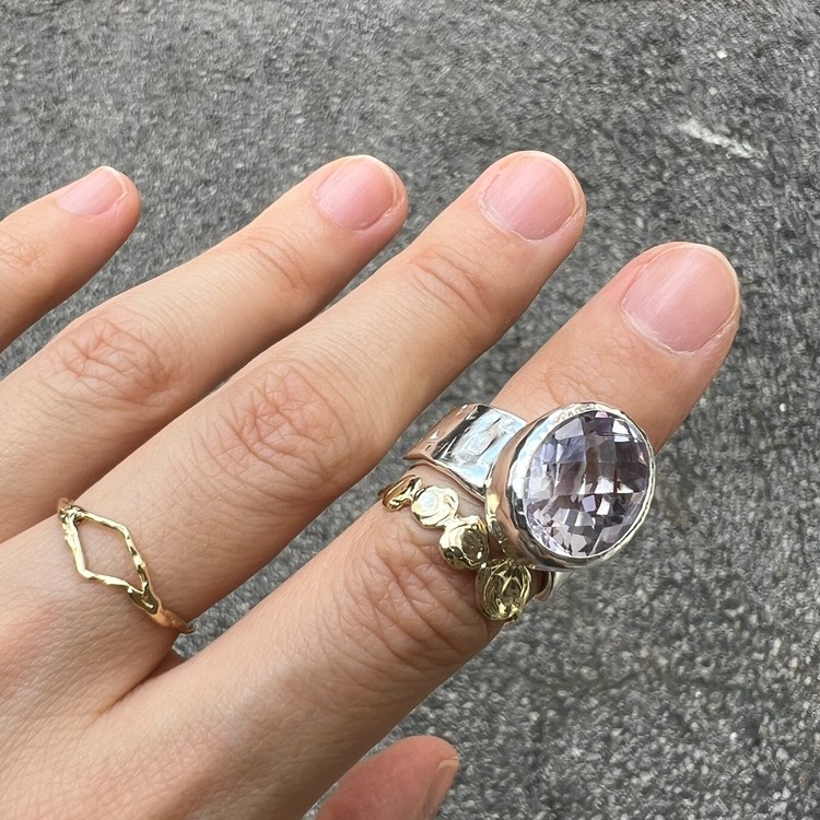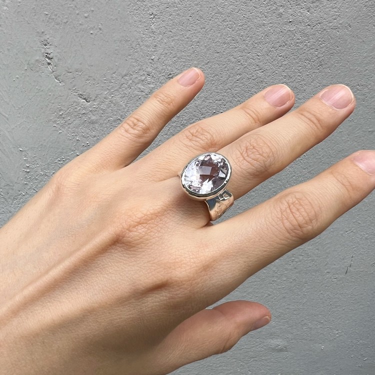 ๋ฐ์ด์ฌ๋ ๋ง(Violet Ring)์ ์์ฃผ ์ฐํ ๋ณด๋ผ๋น์ด ๊ฐ๋๋ ์์ ์ด ์ ํ ๋์ด ์๋ ์๋ฆ๋ค์ด ๋ฐ์ง์ ๋๋ค. ์ง์ ๋ณด๋ผ์์ ์์์ ๊ณผ ๋ค๋ฅด๊ฒ ๋ชจ๋ํ๋ฉฐ ์ฒญ์ํ ๋๋์ ๋ด๊ณ ์์ต๋๋ค. ์์ ์ ์๋ฉด์ด ๋ก์ฆ์ปท ํํ์ ๊ฒฉ์๋ก ๊น์, ๋ณผ๋ํ์ง๋ง ์ฐ์ํ ๋๋์ ๋ํ์ต๋๋ค. ์์์ ์ ๊ฐ์ธ๋ ๋์ง์ ์ ํ๋๋ฅผ ์ํ์ฌ ์ปดํจํฐ ์์ ์ ํ์๊ณ , ๋ฐ์ง์ ๋ฐด๋ ๋ถ๋ถ์ ์๋ง ํ ์ค์ณ๋ฅผ ์ด๋ฆฌ๊ธฐ ์ํด ์์์ ์ผ๋ก ๋ง๋ ํ, ๋ ๋ถ๋ถ์ ๊ฒฐํฉํ์ฌ ์์ฑํ์์ต๋๋ค. ์ฝ 8-10mm ์ ๋์ ๋๋น๋ก ๋น์ ํ์ ํํ์ ๋ฐด๋๋ SGJ ํน์ ์ ์๋ง ๊ฐ์ฑ์ ์ฐ์ถํ๋ฉฐ, ํ๋ฉด์ ์กฐ๊ฐ๋๋ก ๋ฌธ์์ ์ฐ์ด๋ด๋ ์์ ํ์ฌ ๋ ํนํ ์ง๊ฐ์ ๋๋ผ์ค ์ ์์ต๋๋ค. ๋ณ์์ ๋๋๊ฒ ํ๊ธฐ ์ํ์ฌ ๋ฐฑ๊ธ ๋๊ธ์ผ๋ก ๋ง๋ฌด๋ฆฌ ํ์์ต๋๋ค. ์์ค๋ํ ์ทจํฅ๊ณผ ๋ณผ๋ํ ์ค๋ฒ ์ฃผ์ผ๋ฆฌ๋ฅผ ์ข์ํ์ ๋ค๋ฉด ์ฆ๊ธฐ์ค ์ ์๋ ๋ฉ์์ด ๋ฐ์ง์ ๋๋ค.