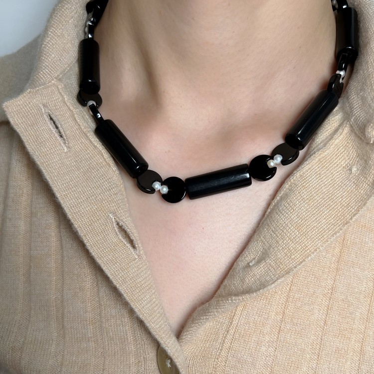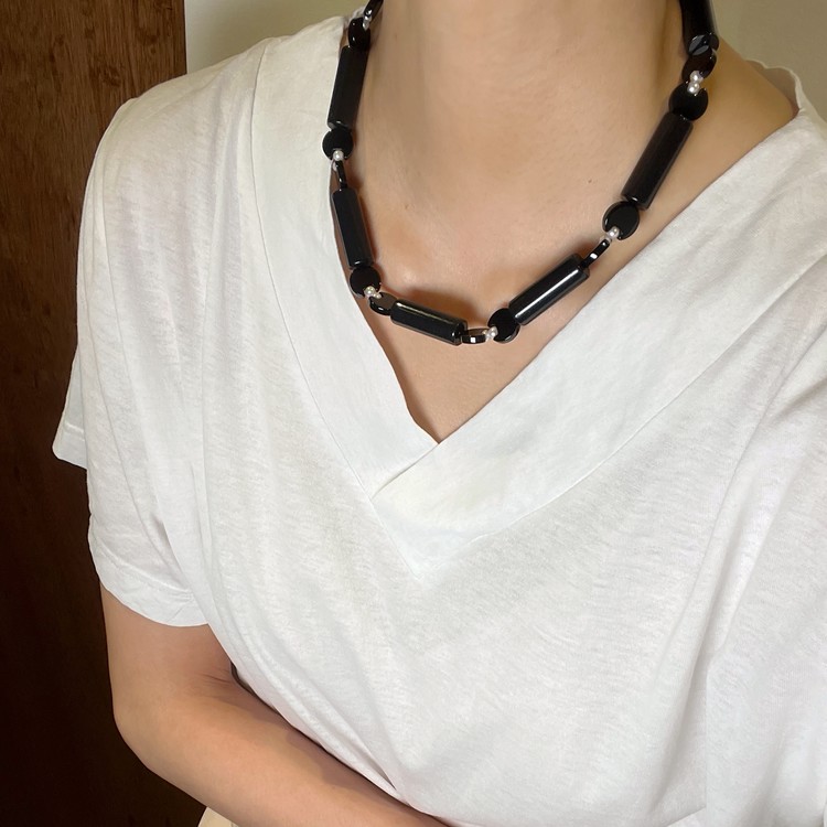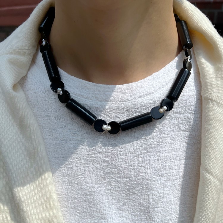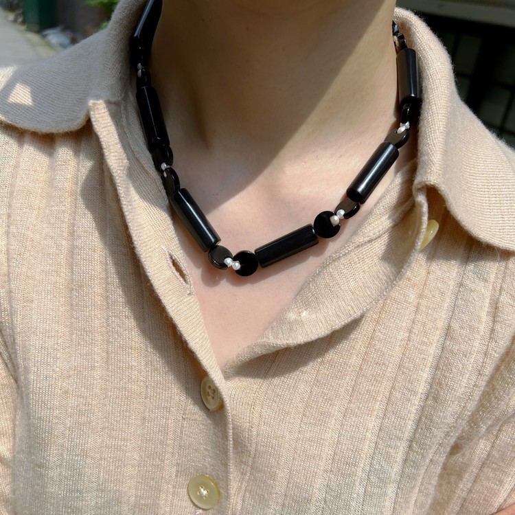 ๋ฏธ๋๋์ ์ฌํฌ๋ ๋น์ฆ ๋ชฉ๊ฑธ์ด(Midnight Symphony Beads Necklace)๋ SGJ์ ์๊ทธ๋์ณ ์์ฌ์ธ ์ํตํ์ ์๋ ์ฐ ์ํฑ ๋น์ฆ๋ฅผ ์ฃผ ์ฌ๋ฃ๋ก ์ฌ์ฉํ์ฌ ์์ ํ์์ต๋๋ค. ๋ชจ๋ํ ์ํฑ ๋น์ฆ ์ฌ์ด์ ๋ฉ์ํ ์ํ ์ค๋์ค, ์์ ์ง์ฃผ๋ฅผ ๊ต์ฐจ๋ก ์ฎ์ด ๋ ํนํ๋ฉด์๋ ์ฐ์ํ ํฌ์ธํธ๋ฅผ ๋ํ์ต๋๋ค.