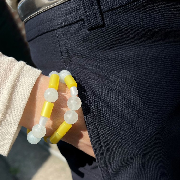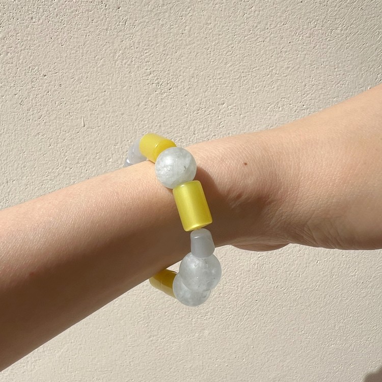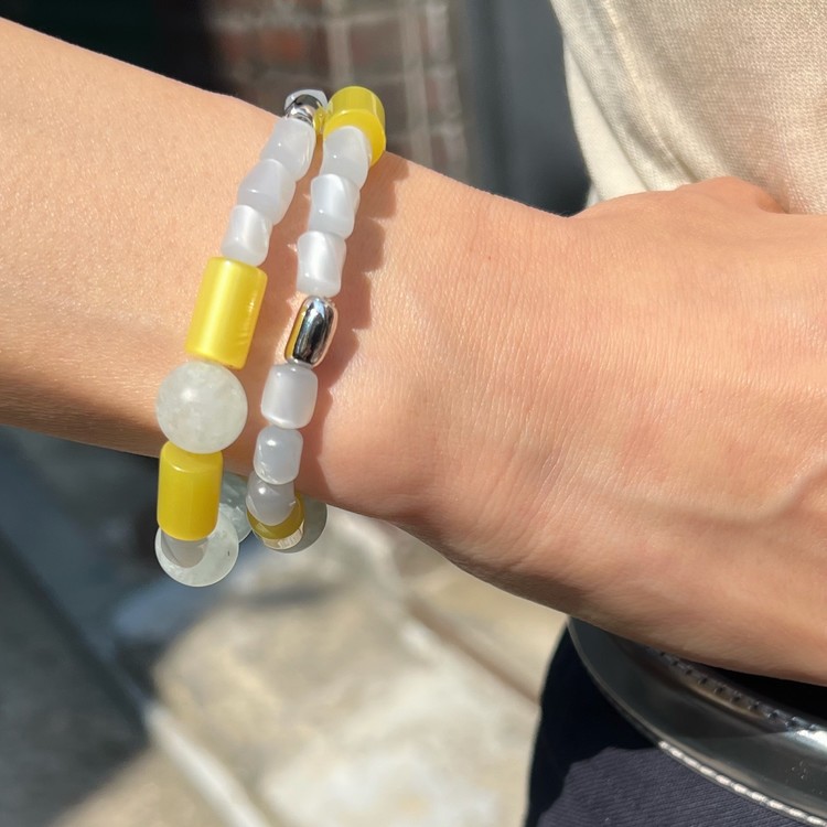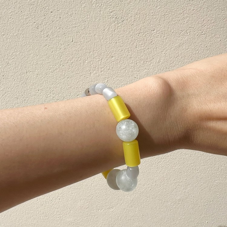 - 팔찌는 우레탄 소재의 투명 고무줄로 작업 되며, 마무리 공정상 필요한 매듭 부분은 눈에 띌 수 있습니다.