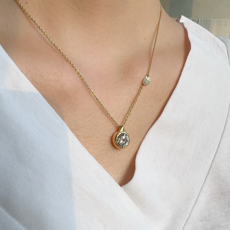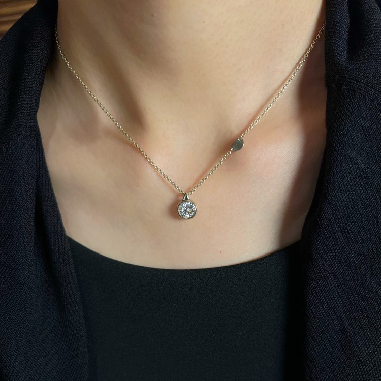 1์บ๋ฟ ๋ฉ ๊ทธ๋ก์ด ๋ค์ด์๋ชฌ๋ ๋ชฉ๊ฑธ์ด(1.00ct. Lab-Grown Diamond Necklace)๋ ์คํค์ 360๋ ๊ฐ์ธ๋ ํ์์ ๋ฒ ์ฆ ์ ํ ์ผ๋ก, SGJ ํน์ ์ ๊ณ ๊ธ์ค๋ฌ์๊ณผ ํด๋์ํจ์ด ๋๋ณด์ด๋ ํผ์ค์ ๋๋ค. ๋ฒ ์ฆ ์ ํ ๋์ง์ ์์ ๋ฌผ๋ฐฉ์ธ์ ์ฐ์์ํค๋ ๋ชจ์์ผ๋ก ๋์์ธ ํ์์ผ๋ฉฐ, ์ฒด์ธ์ด ํ๋ํธ๋ฅผ ๊ดํตํ๋ ํํ๋ก ๋ชฉ๊ฑธ์ด ์ฐฉ์ฉ์, ํ๋ํธ๊ฐ ๋ฌด๊ฒ ์ค์ฌ์ ์ฐพ์ ์์ฐ์ค๋ฝ๊ฒ ์ด๋๋ฉ๋๋ค. ์ฒด์ธ์ ์ธก๋ฉด์ ์์์ ์ผ๋ก ๋ง๋ ์์ ๊ธ ์กฐ๊ฐ์ ์ฐ๊ฒฐํ์ฌ ์ ๋ํฌํ ์๋ง ๊ฐ์ฑ์ ๋ํ์ต๋๋ค.