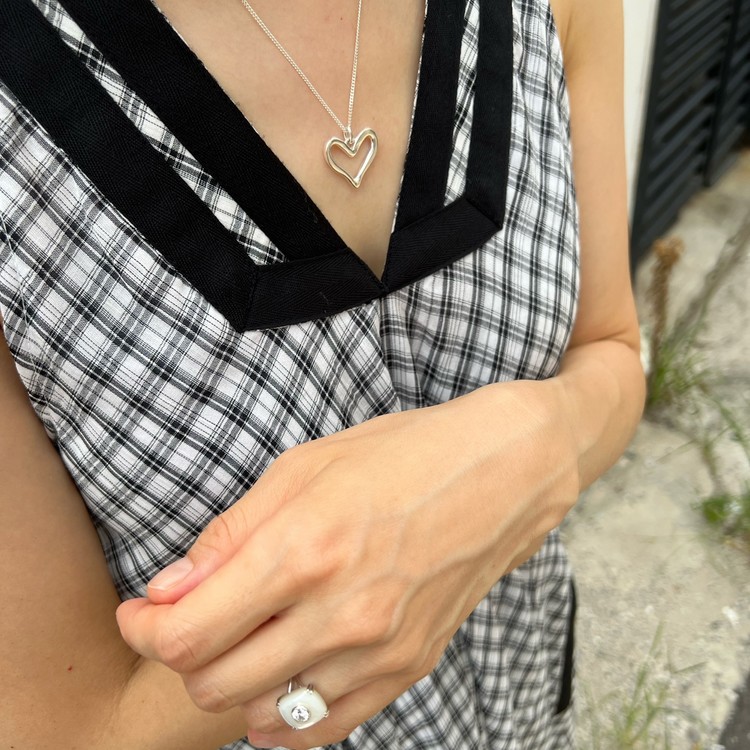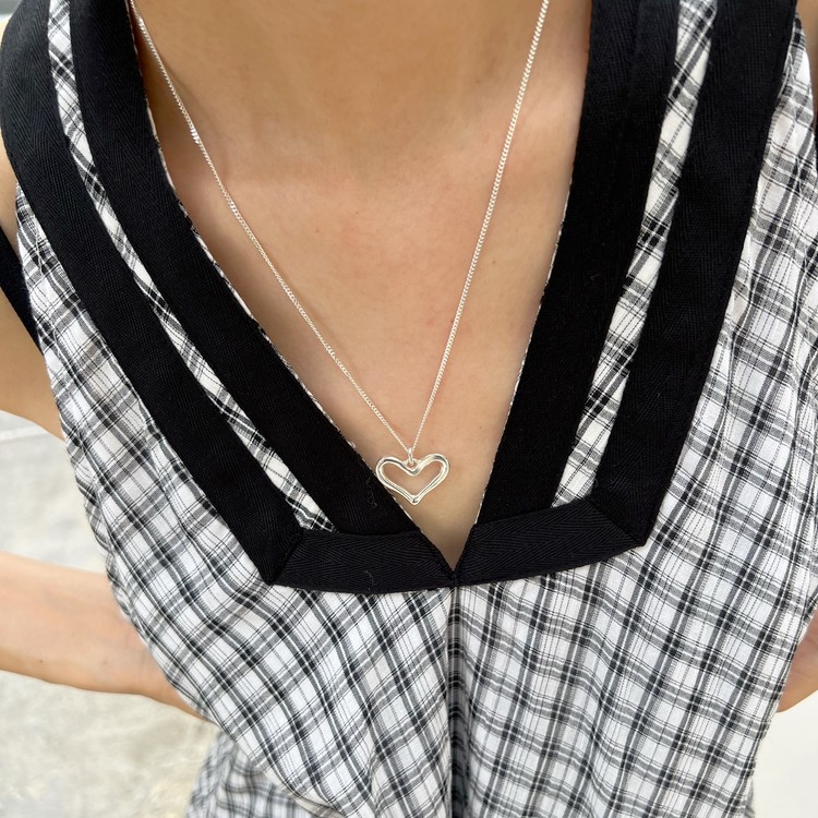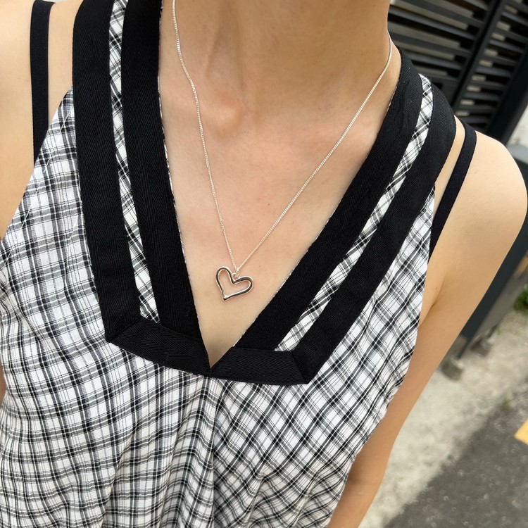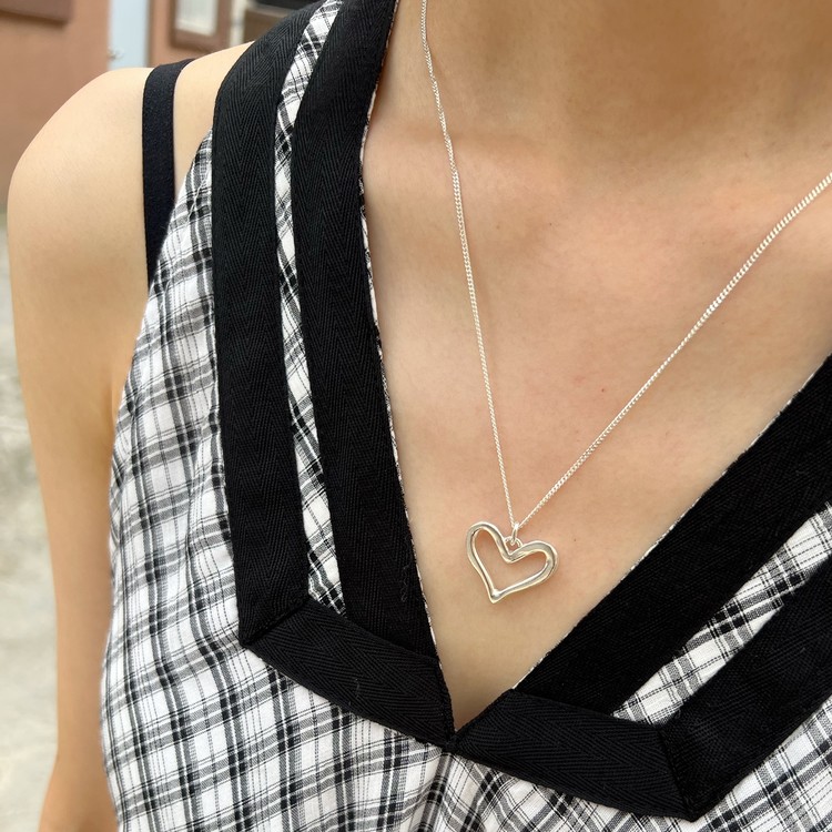 체인은 단면이 납작하게 눌러 깎여 촘촘하게 엮어져 있는 형태를 선택하여, 하트 펜던트의 사랑스러운 느낌을 모던하고 세련되게 돋보이도록 연출합니다. 체인의 끝부분 여밈은 SGJ만의 수작업 고리로 완성하여 고급스러운 디테일을 더했습니다. 유행을 타지 않는 클래식 감성과 SGJ만의 독특하면서도 단아한 멋이 함께 공존하는 목걸이입니다. 정장과 캐주얼 어떤 룩에도 자연스럽게 매치할 수 있습니다.