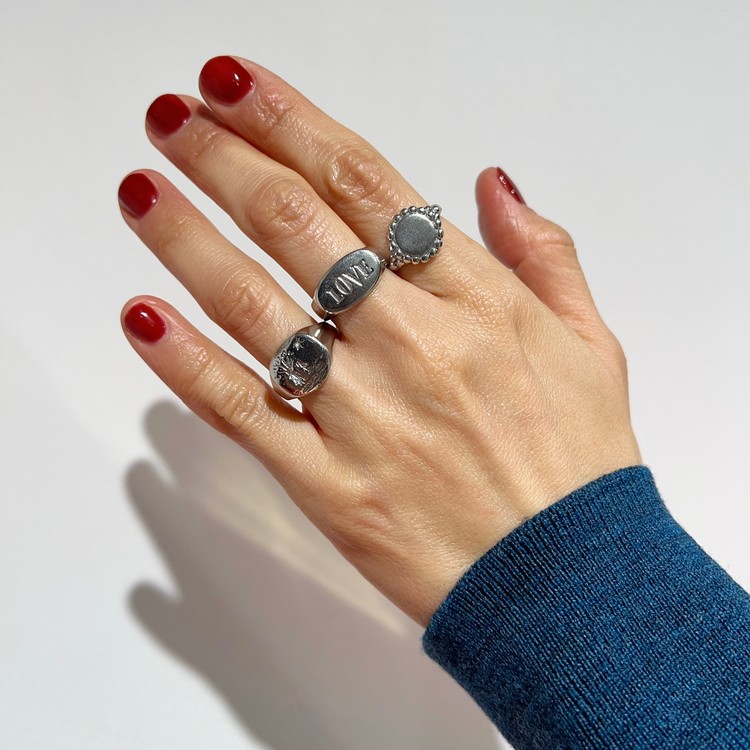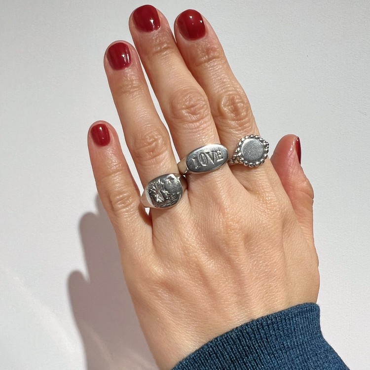 제인 시그넷링(Jane Signet Ring)은 전면에 원하시는 이니셜을 각인하여 착용하는 반지입니다. 의미가 담긴 이니셜이 각인할 수 있는 시그넷링은 서구에서 가문의 문장등을 새겨 착용하던, 오랜 역사를 지닌 반지의 형태이기도 합니다. 데일리 아이템으로 착용하시기 좋은 반지이며 착용 할수록 애착이 가는 반지이기도 합니다. 각인되는 이니셜은 알파벳 1개로, 폰트는 이미지를 참고해 주시기 바랍니다. 각인을 원치 않으실 경우, 각인 옵션에서 '없음'으로 선택해 주시기 바랍니다.